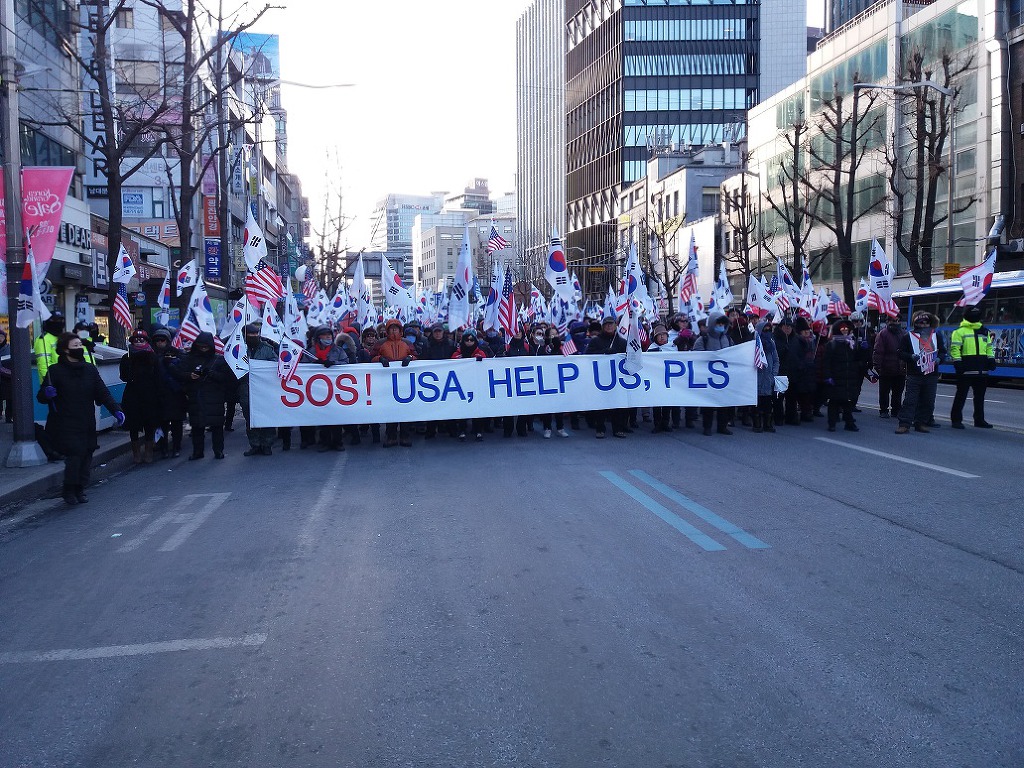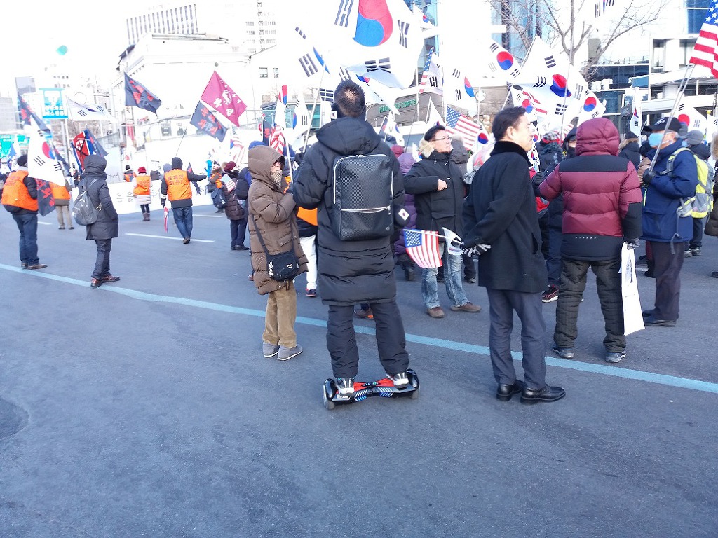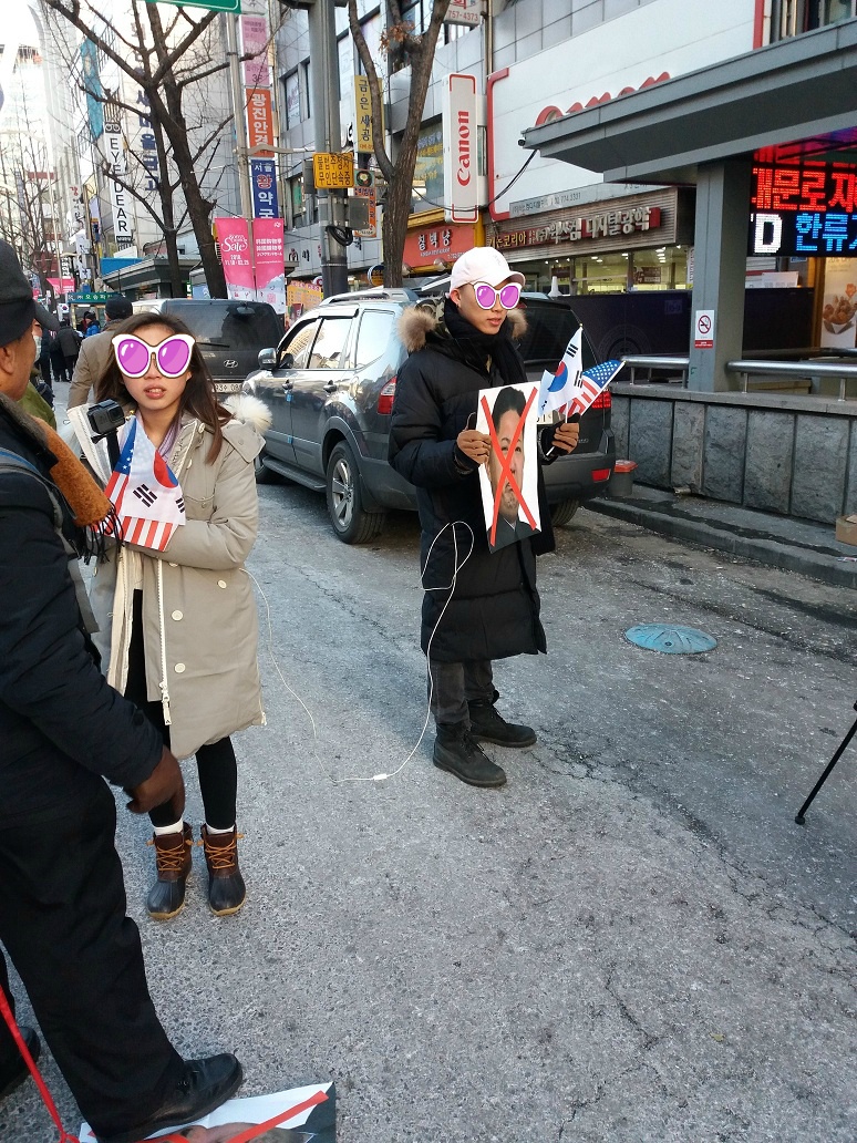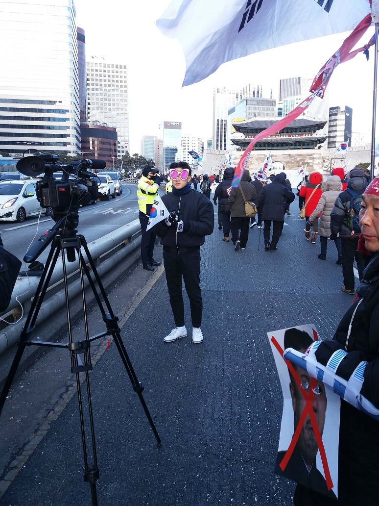 하도 추워서 태극기를 두른 모자를 집어 넣고 태극인이라는 표식이 없자 싸움 말리고있는 나를 어르신이 경찰로 오해하고