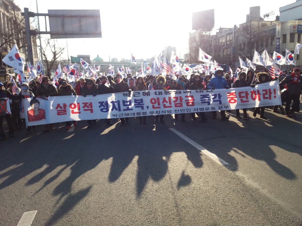 새로운 변화의 물결이 밀려 오듯 다양한 계층의 참여와 이 혹한의 추위에 참여한 태극인들의 기세가 변화의 바람을 일으키는거