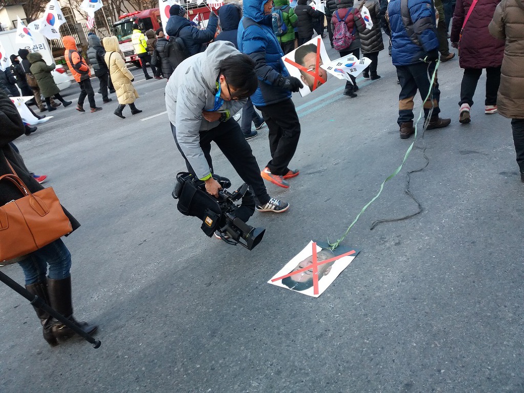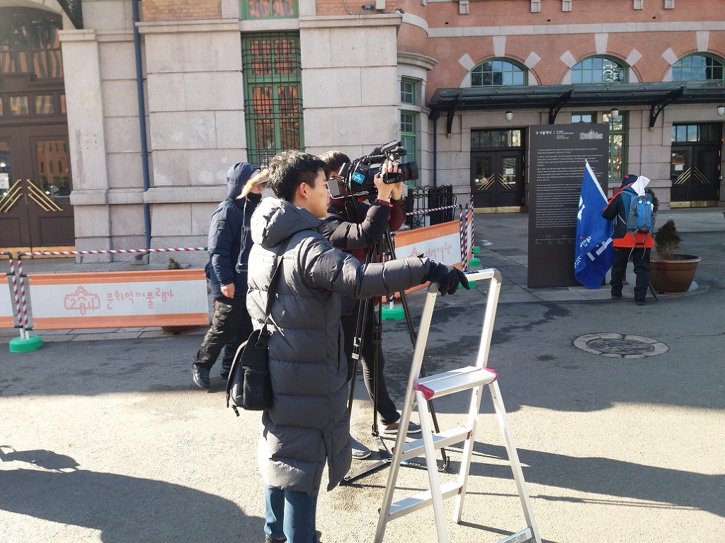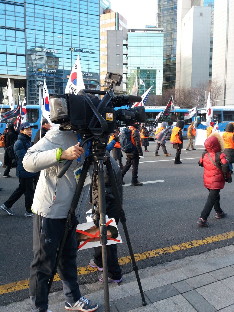 외신들도 촬영에 여념이 없습니다. 추위에 아랑곳없이 행진하는 모습에 감동합니다.