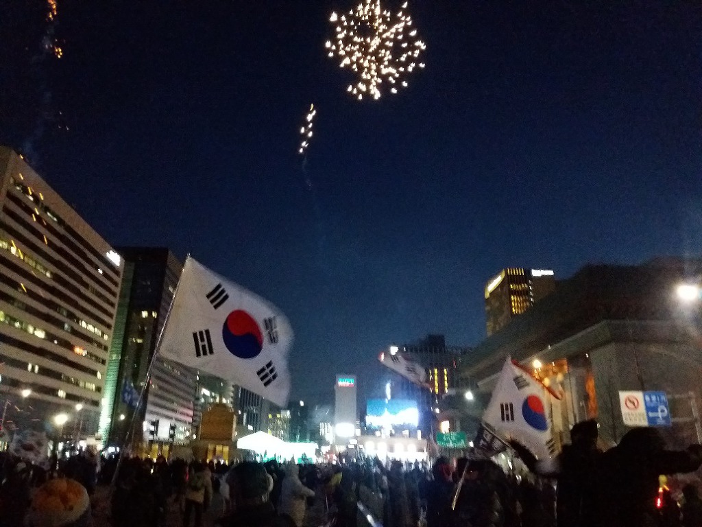 집회 종료후 올라가던 불꽃이 인상적이었습니다.