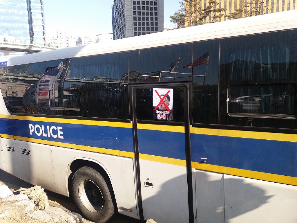 인공기나 정은이 불태우는것에 신경을 곤두세우고 있는 경찰들 때무에 오늘의 집회도 험난한 길을 예고하고 있습니다.