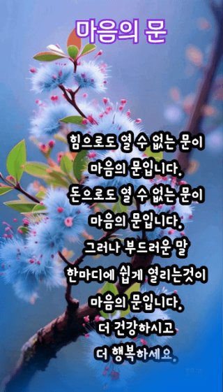 | 성숙이라 함은 산이 높다고 해서 반드시 명산이 아니듯이 나이가 많다고 해서 반드시 어른은 아니지요. 가려서 볼 줄 알고 새겨서 들을 줄 아는 세월이 일깨워 준 연륜의 지혜로 판단이 그르지 않은 사람이 어른이지요. 성숙이라 함은 높임이 아니라 낮춤이라는 것을 채움이 아니라 비움이라는 것을 스스로 넓어지고 깊어질 줄 아는 사람입니다. 새벽 강가에 홀로 나는 새처럼 고요하고 저녁 하늘 홍갈 색 노을빛처럼 아름다운 노년들이여! 한 해 또 한 해를 보내는 마음으로 인생이 무상함을 서글퍼하기보다 깨닫고 또 깨달아야 합니다. 삶의 교훈이 거름처럼 쌓여가니 내 나이 한 살 더하여도 행복해야 합니다. 젊음도 좋지만 건강이 최고지요! 마음은 비우고 속은 채워서 건강한 생각으로 365일 복된 하루 보내시길 바랍니다. -좋은 글- |