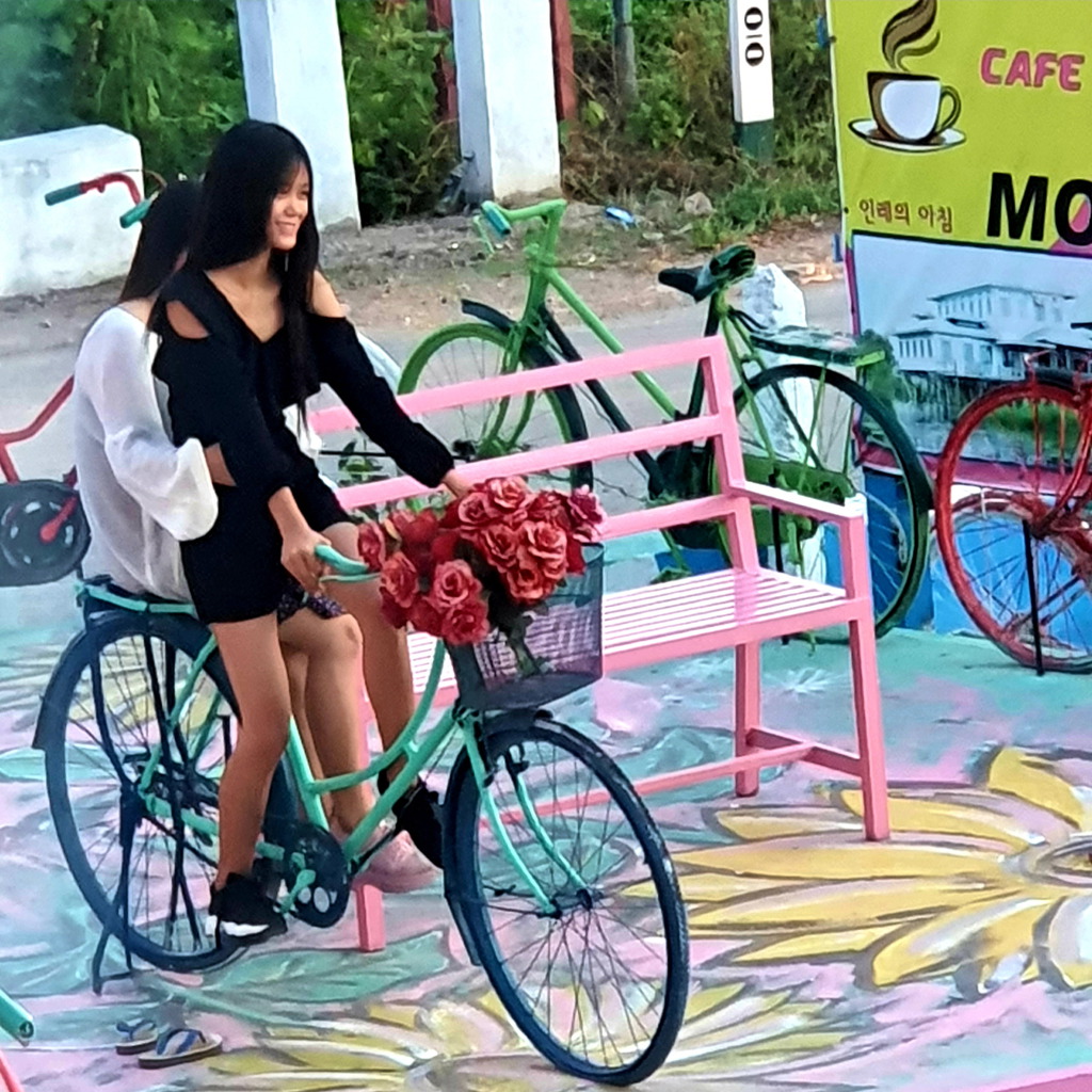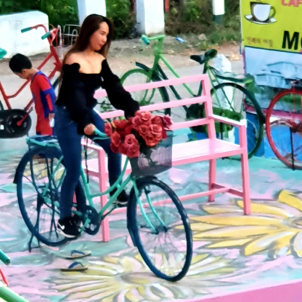 자전거 이용 기념 사진을 찍고 나름 즐거워 하시네요
