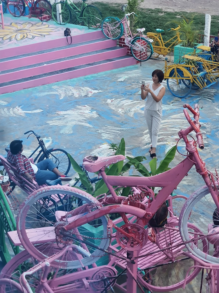 자전거로 많은 분위기를 만들어 진 모습이 효과가 있습니다