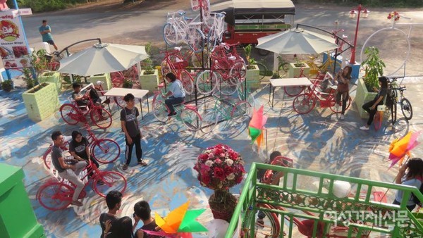 마을의 버려진 자전거가 모두 수집되어 만들어졌다.