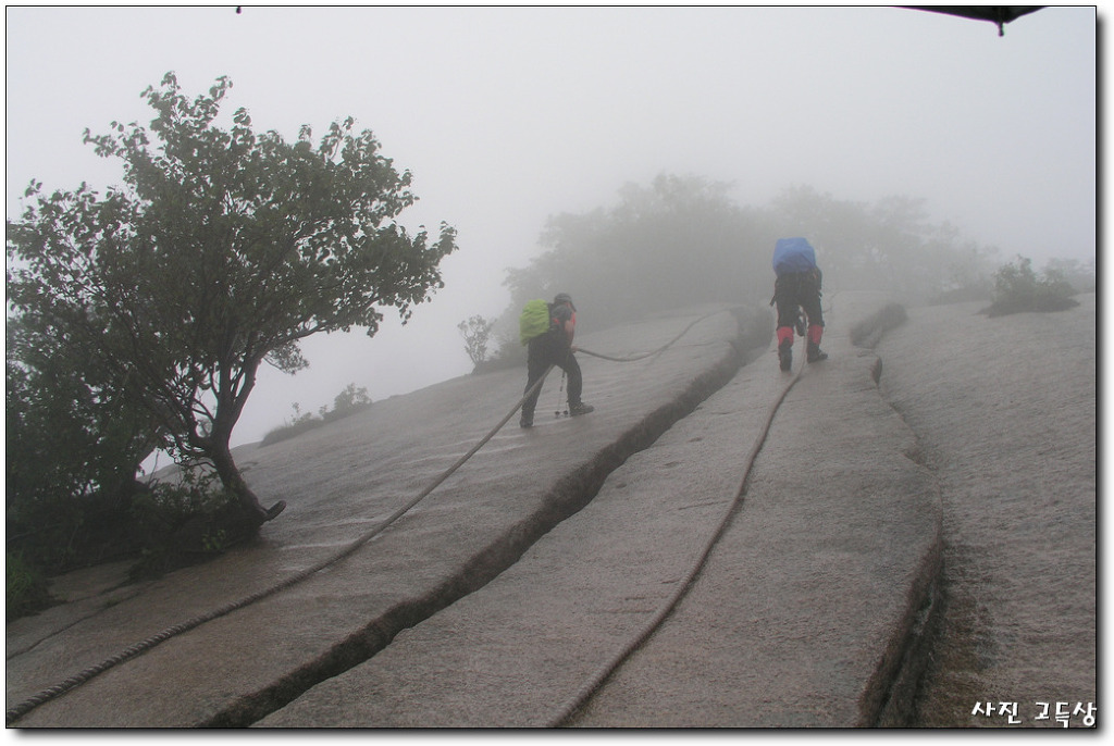 아침 10시경 하늘이 걷히는듯 해서 산행을 시작 했더니만, 정상을 지나면서 부터는 폭우로 변해서