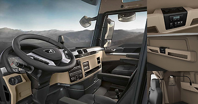 뉴 MAN TG 시리즈의 운전자 중심으로 재설계 됐다. 사진은 새롭게 추가된 4인치 TFT 컬러 정보창, 만트럭 미러링크(어플&네비게이션), 리오박스, 직관적 배열의 센터펜시아의 버튼 (만트럭 홈페이지 참조)