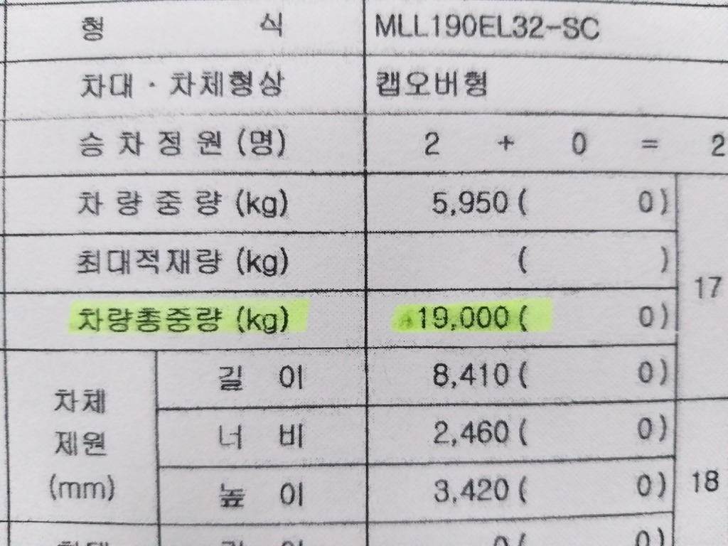 차량총중량 19,000kg, 전축중 7,500kg, 후축중 12,500kg 으로 최대 크기의 LPG 탱크 탑재가