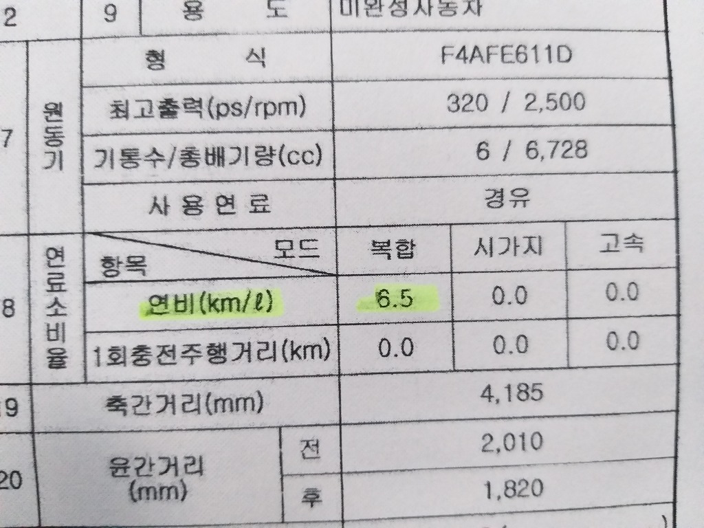 연비가 좋아서 비용이 절감되며, 아래 대정부 형식승인제원표를 올려드립니다.