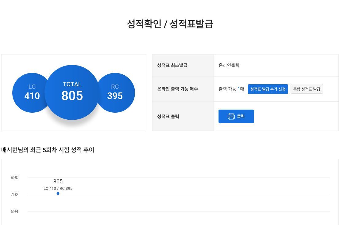 수능 영어는 4등급이었고, 1학년때 처음 본 모의토익 점수가 200점 미만이었어요.(오래 전 점수라 기록이 남아있지 않아 첨부하지 못했습니다) 그 정도로 영어와 친숙하지 않았고, 영어를 싫어했습니다. 그럼에도 제가 첫 토익에 805점을 받은건 제가 잘나거나 영어에 재능이 있어서가 아니라, 선생님이 알려주시는 대로 성실히 임했기 때문이라고 생각합니다. 그냥 선생님께서 알려주시는 문제풀이 방법대로 풀고, 리뷰하고 단어도 반복해서 외운것이 쌓이고 쌓이다 보니 이게 기본기가 되고, 실력이 됐습니다.