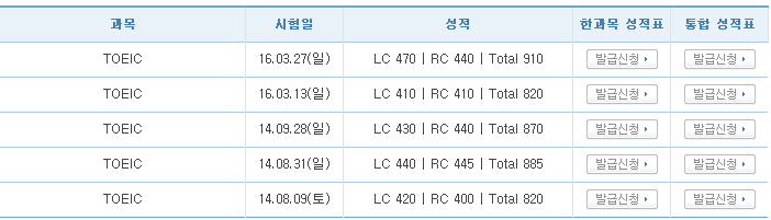 2달째 수강후 받은 성적은 드디어! 졸업 성적인 900점대네요. 감동입니다 ㅠㅠ