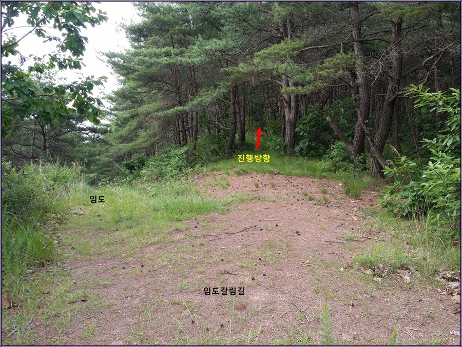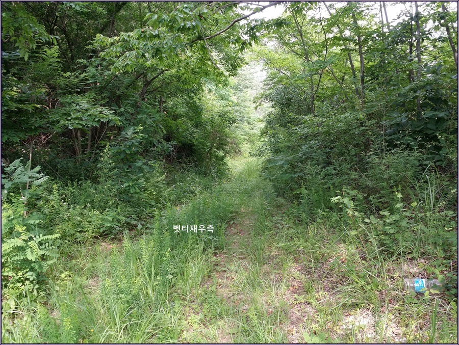 07:25 임도 삼거리에 도착했습니다 위동재에서 이어지던 임도가 좌우측으로 굽어 돌아가며 또 다른 임도가 정면으로 이어지는 삼거리에서 정면의 임도와 나란한 좌측의 잡목지대를 이어가 낮은 봉우리에 도착후 우향으로 전환되어 좌측 아래에 위리 방향의 가옥들이 조망되는 지점을 지나서 우측에서 나란히 진행되던 임도가 좌측11시 방향으로 갈라지고 진행해야할 직진의 길이 갈라지는 갈림길에 도착하여 직진의 오름길을 올라 좌우측으로 길이 갈라지는 갈림길에 도착후 좌측11시 방향의 내림길을 내려가 좌측으로 위리의 새마을의 농경지와 가옥들을 비롯해 정면의 진행해야할 마루금이 조망되며 좌우측의 길이 갈라지는 갈림길에서 우측1시 방향으로 전환되어 흙묘1기를 지나 좌우측과 11시방향의 길이 갈라지는 오거리 안부갈림길에 도착합니다 임도 삼거리에 도착했습니다 ↓