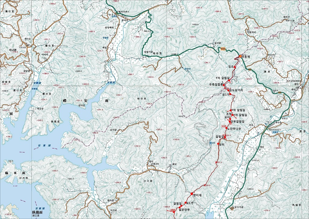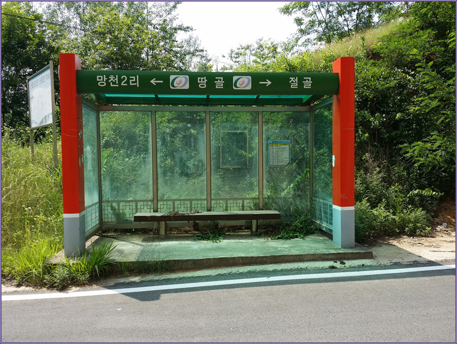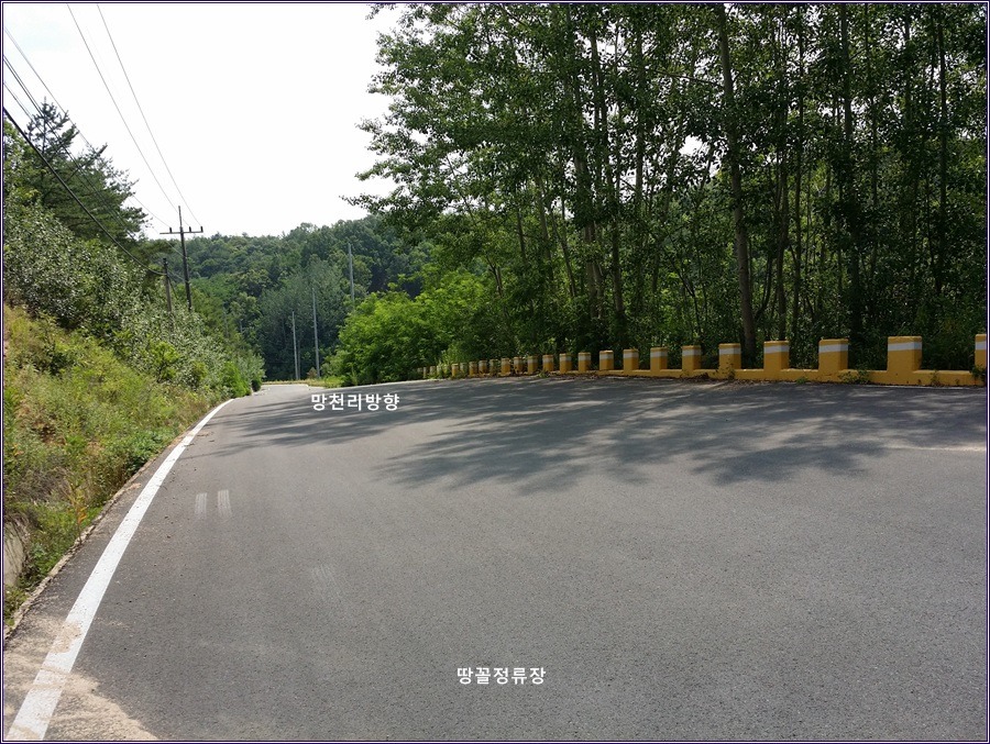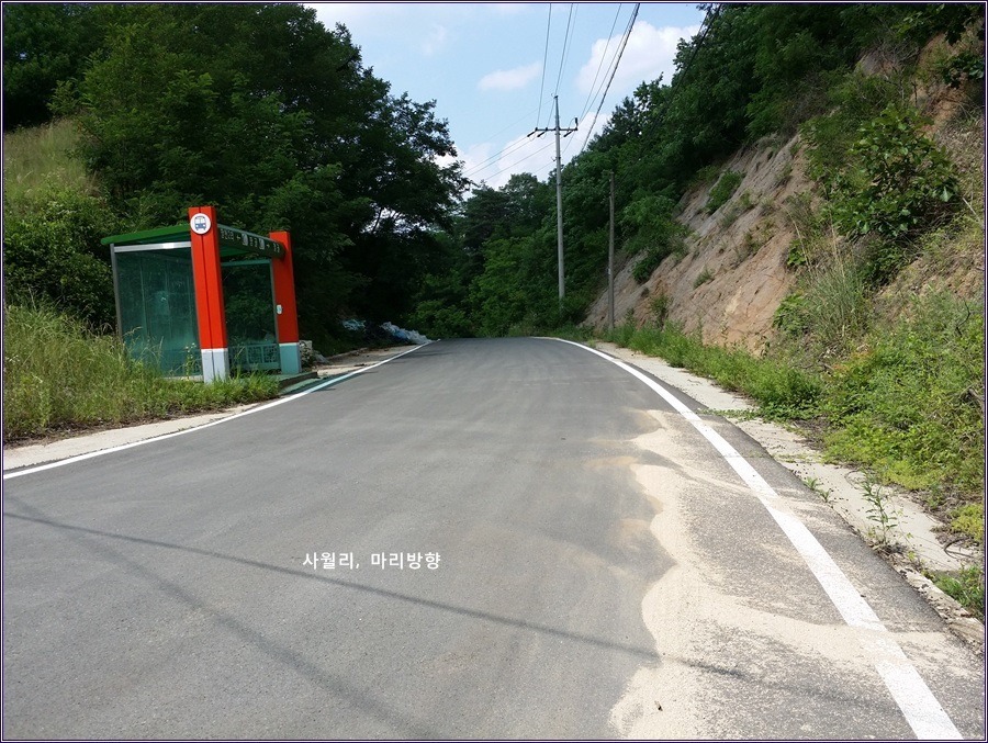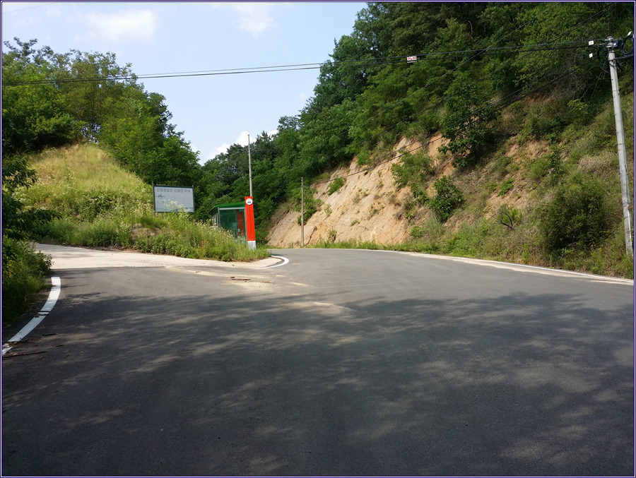 14:44 땅꼴입구 삼거리에 도착했습니다 우측의 마리와 좌측의 망천리를 경계하며 “땅꼴”버스정류장이 설치되어있고 좌측11시 방향의 땅꼴로 도로가 연결되는 삼거리 갈림길에서 산행을 마치고 좌측 망천리 방향의 도로를 약30여분을 진행하여 34번도로와 합류되며 망천교 앞인 마리삼거리에 도착하여(15:42) 약57분간동안 휴식하며 기다려 대곡에서 16:00에 안동으로 출발한 33번 버스가 임동을 경유하여 16:39에 도착해 승차후 안동역 앞 정류장에서 하차해 터미널행 시내버스로 환승후 18:20에 동서울로 운행하는 시외버스로 무사히 귀가를 했습니다 . 땅꼴입구 삼거리에 도착했습니다 ↓