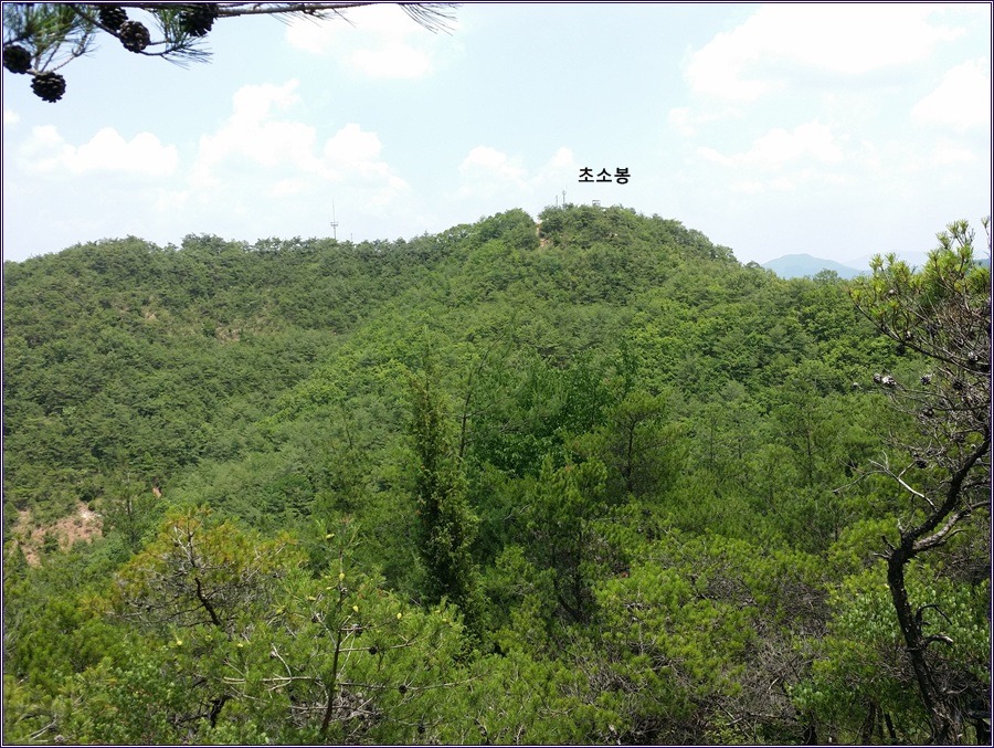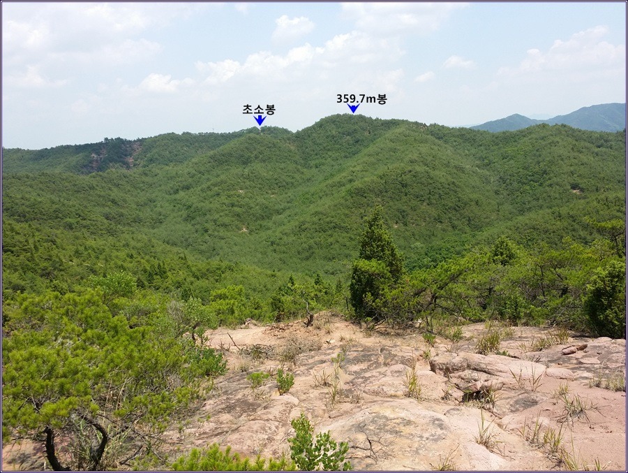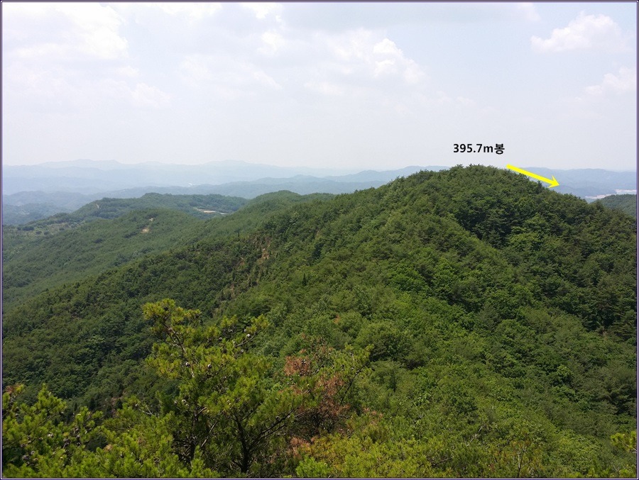 395.7m봉에서 독도실수를 한후 내려와 지나온 초소봉을 조망했습니다 ↓