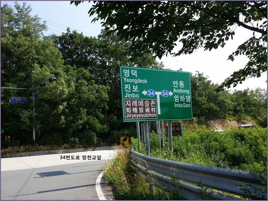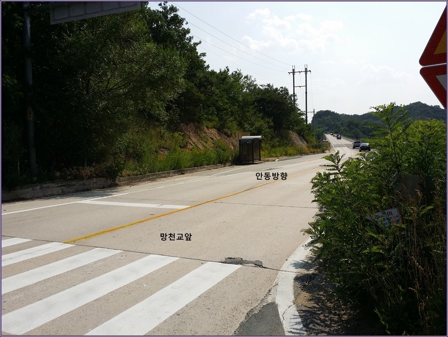 안동행 버스정류장인 34번도로의 망천교입구 마리삼거리에 도착했습니다 ↓