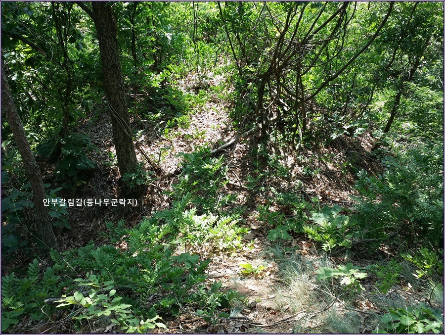 등나무가 군락을 이루고 있는 안부갈림길을 통과합니다 ↓