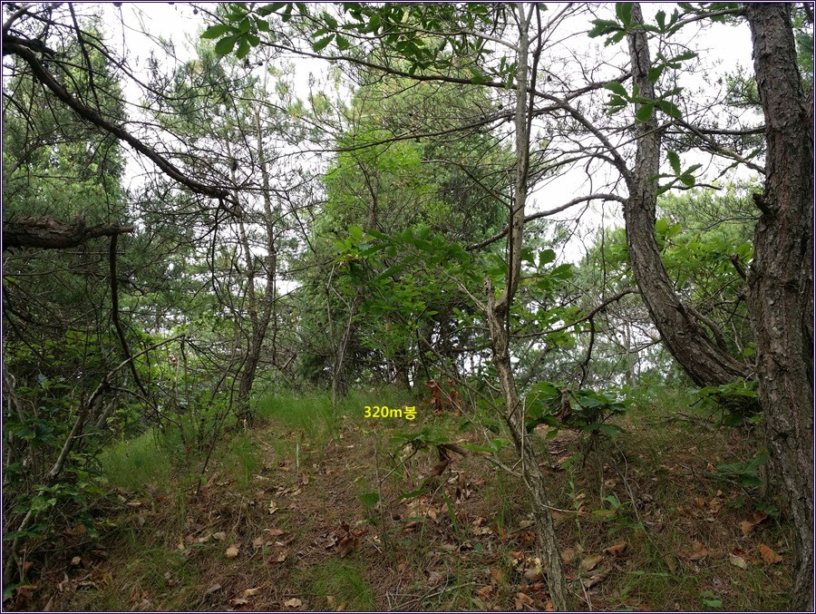 07:59 안부갈림길에 도착했습니다 다섯 갈래로 길이 갈라지는 안부에서 직진의 오르막길을 올라 키가큰 노간주나무 한구루가 자리한 등고선상의 320m봉에 도착하여 좌향의 완만한 길을 이어가 323.2m봉을 지나 좌우측의 희미한 길이 갈라지는 얕은 안부갈림길을 통과하여 김해김공의 이장묘터에 도착후 우측1시방향의 내리막길을 내려가 봉분이 커다란 흙묘1기가 자리하고 우측의 배티 방향이 조망되는 넓은 묘터봉에 도착하여 완만한 길을 이어가 배티 방향의 농경지와 도로를 비롯해 우측 아래에 배티저수지가 조망되는 지점을 지나서 간벌된지 오래된 나무들이 지면에 널려있는 오름길을 올라 321.5m봉에 도착합니다 안부갈림길에 도착했습니다 ↓