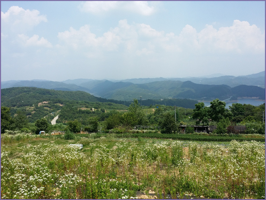 세멘트도로를 버리고 좌측으로 올라 묘터에서 조망했습니다 ↓