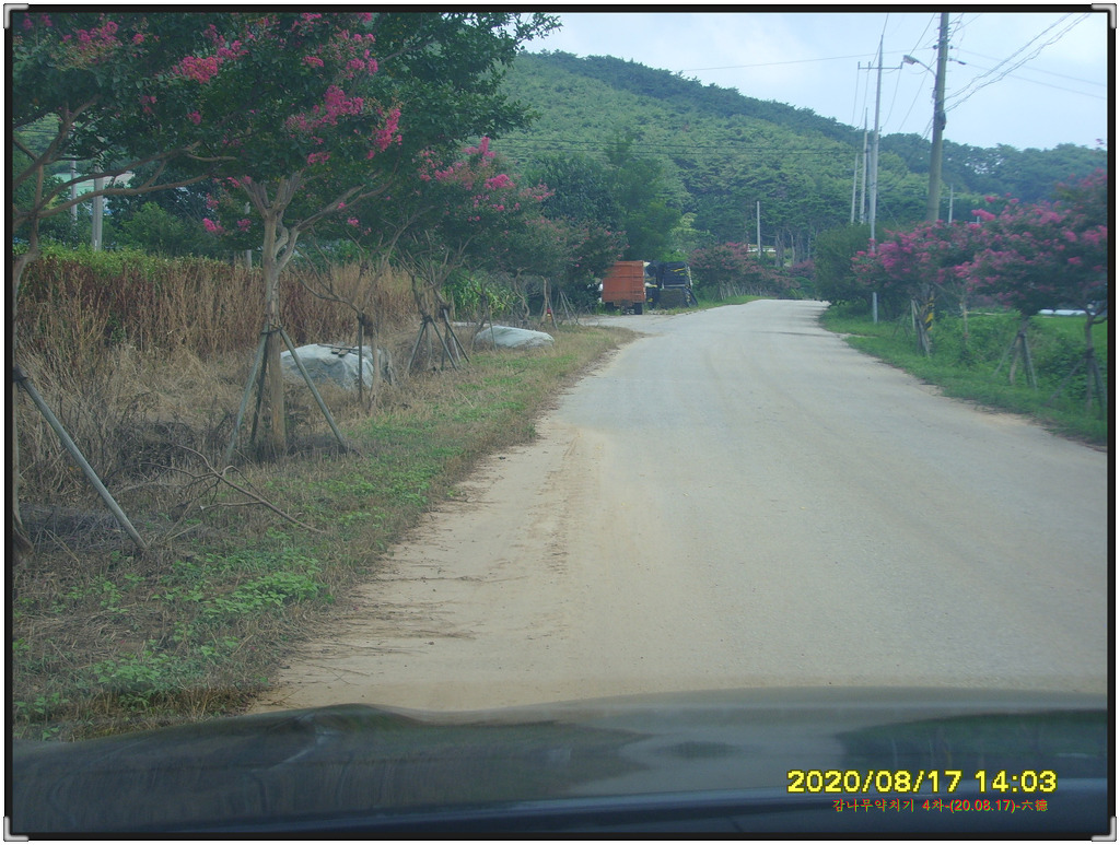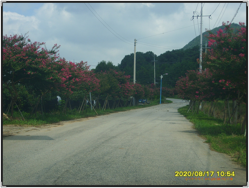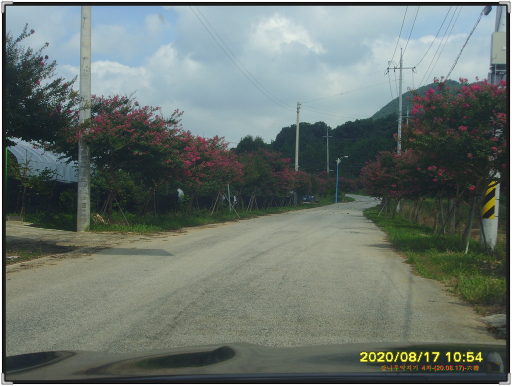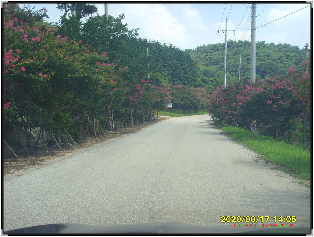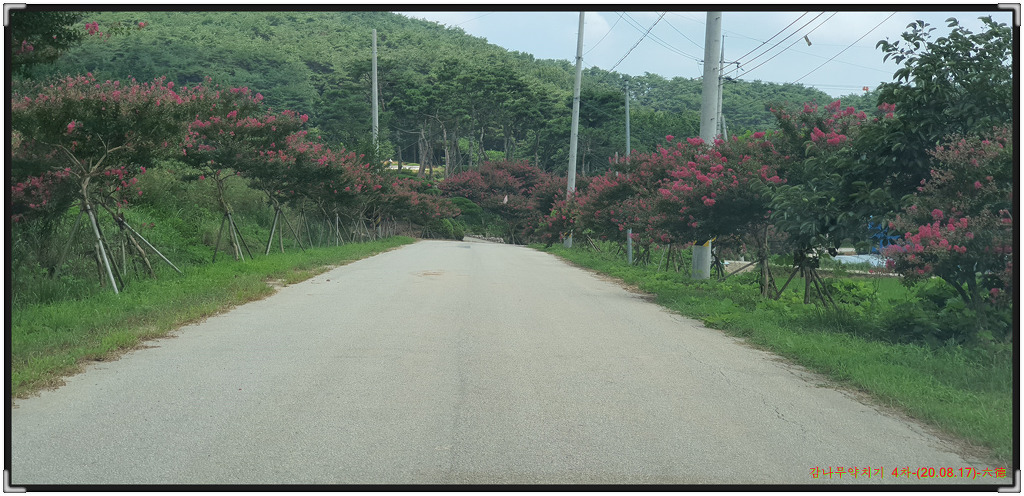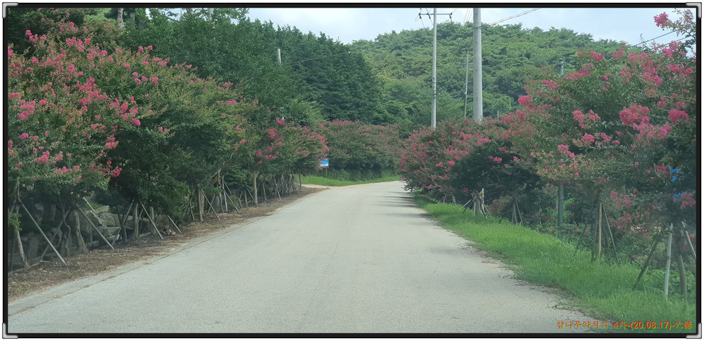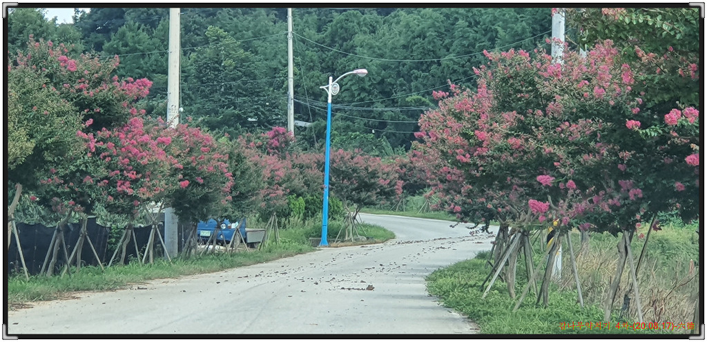 감나무밭 들어가는 진입도로에 피어있는 백일홍길의 동영상