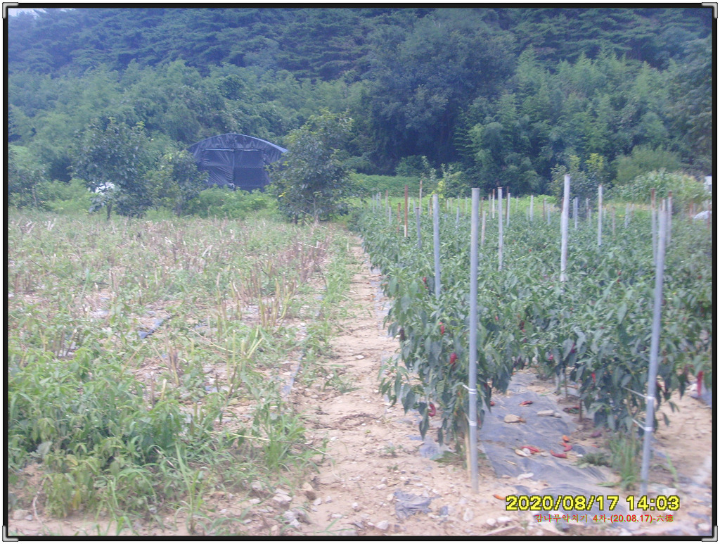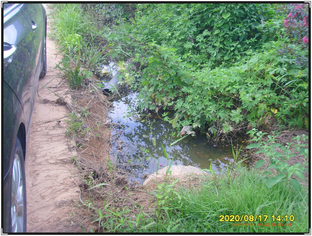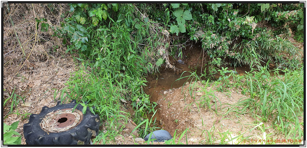 긴 장마로 인해서 밭 뒤쪽에는 이렇게 물이 흐르고 있네요.