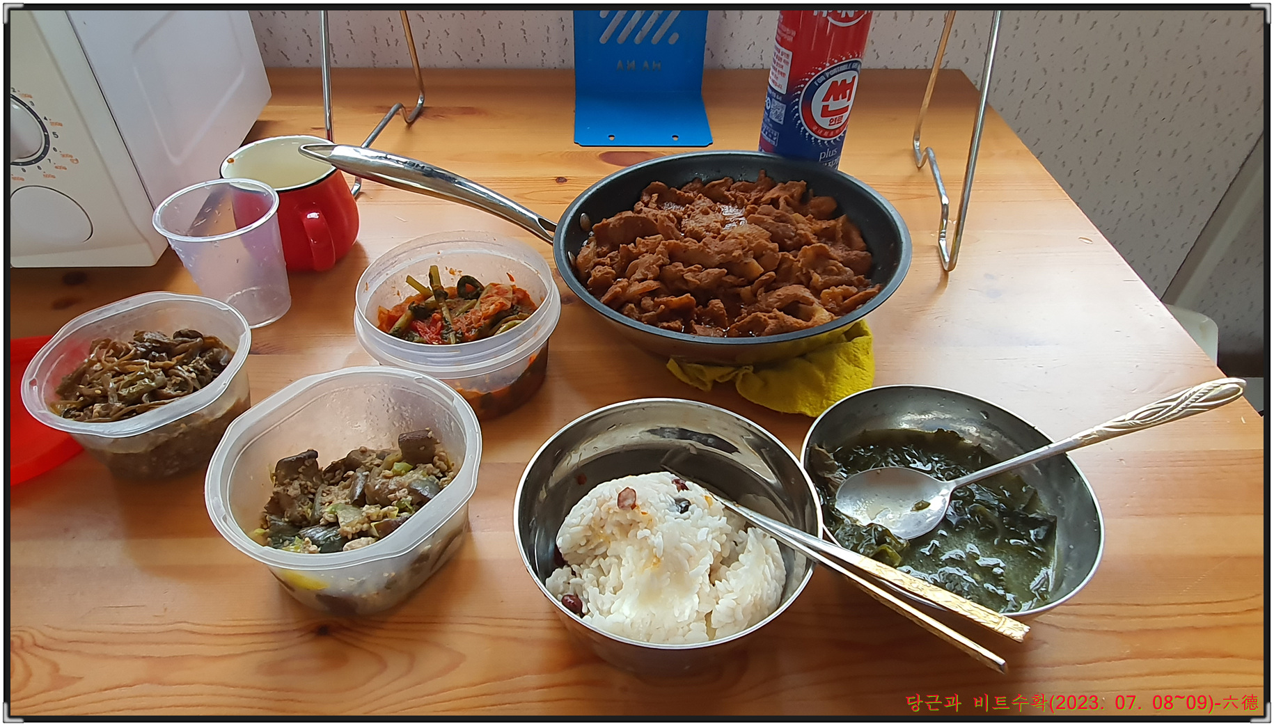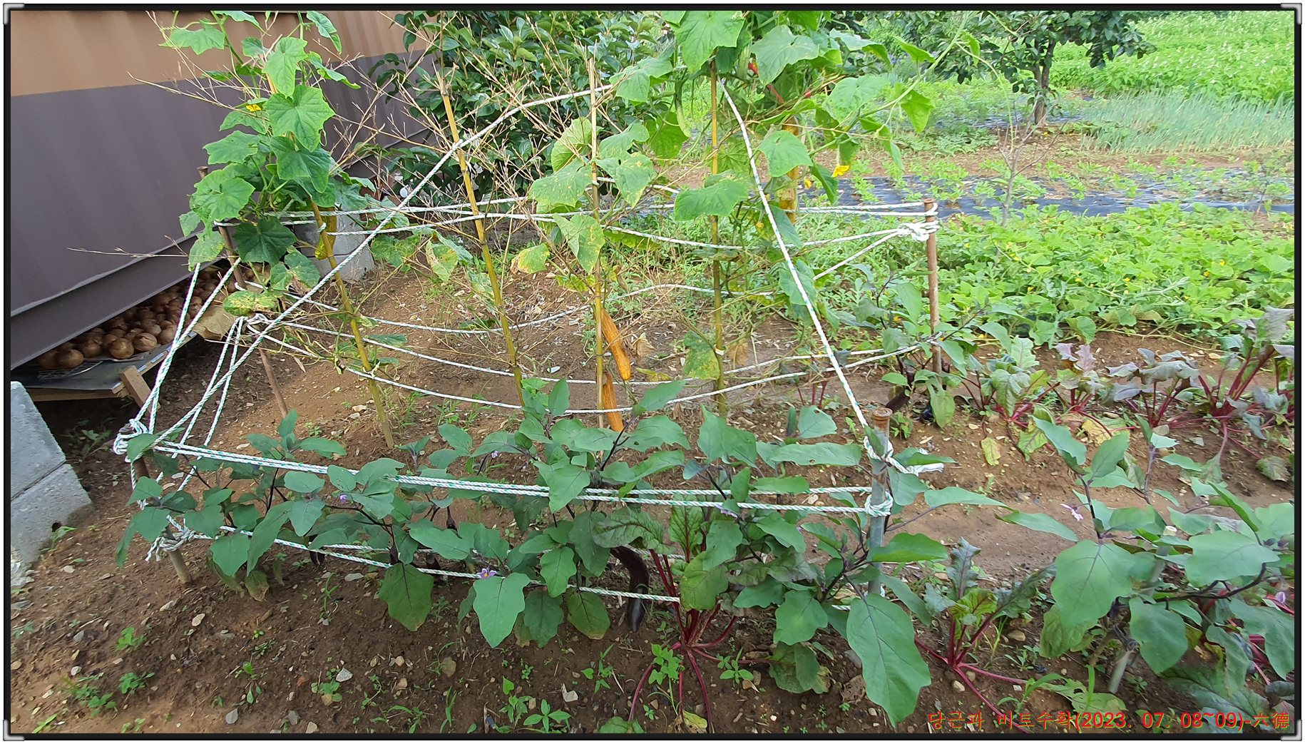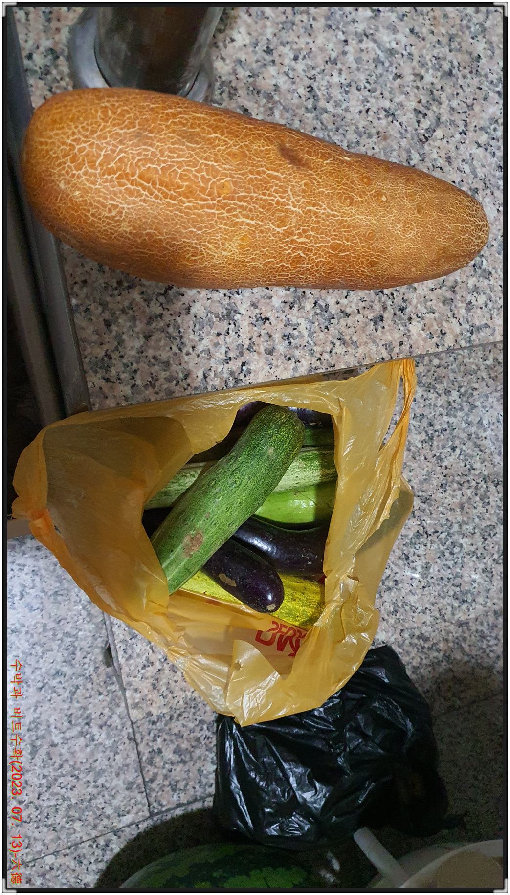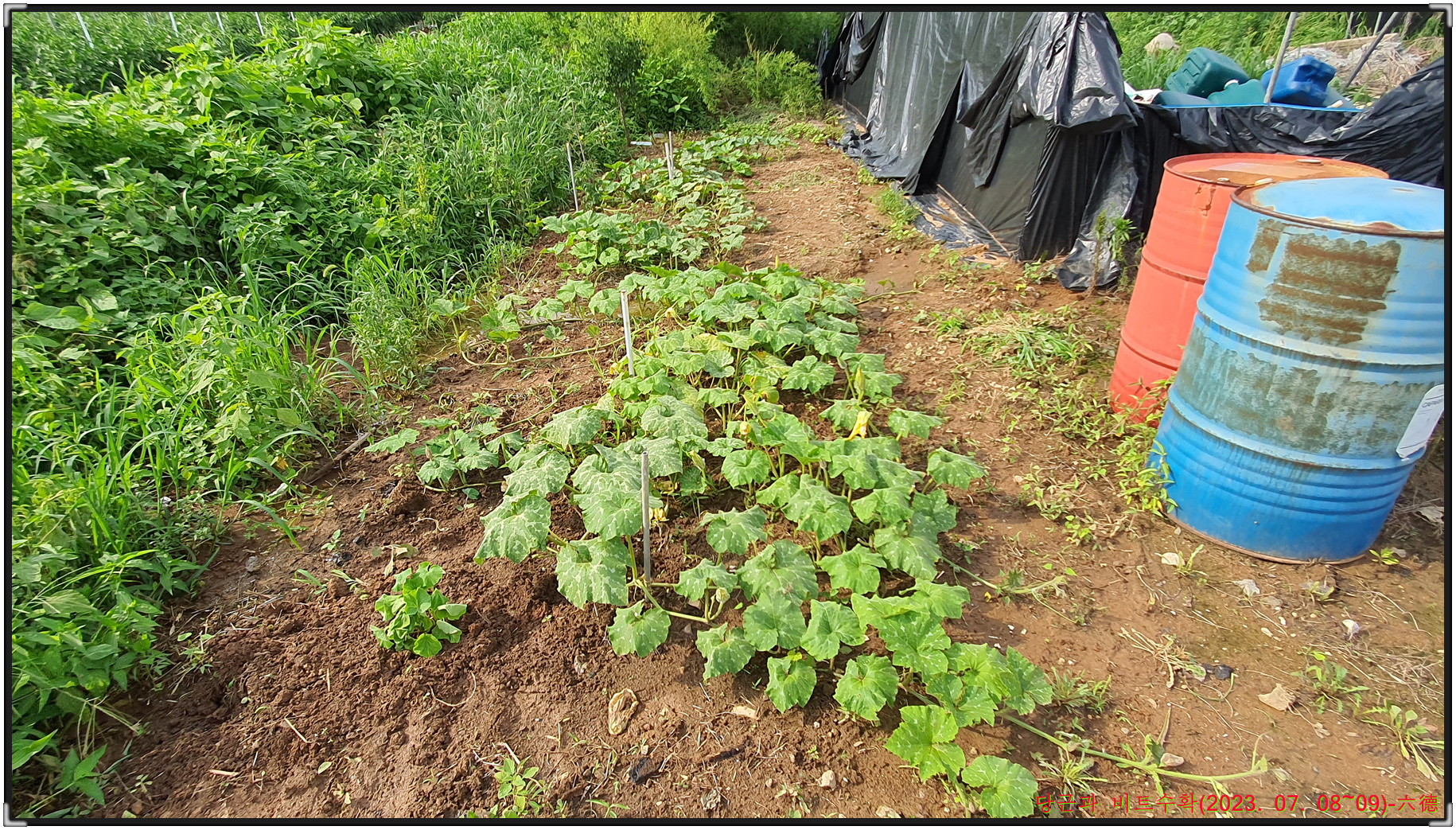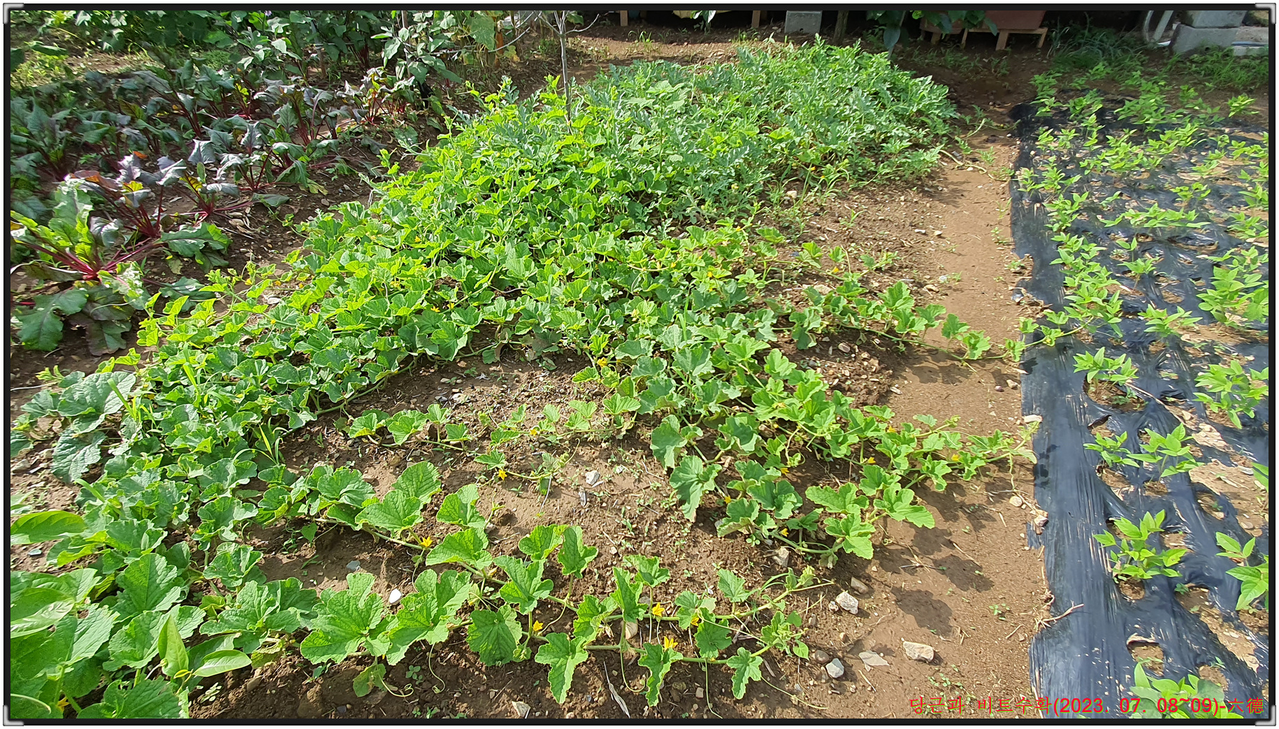 장맛비가 시작돼 수확을 못다한 비트와 수박을 수확하고자 쉼터로 내려가 비트와 수박 그리고 대파를 수확해 밤8시40분경에 쉼터를 출발해 밤11시20분경에 귀가하게 됩니다.
