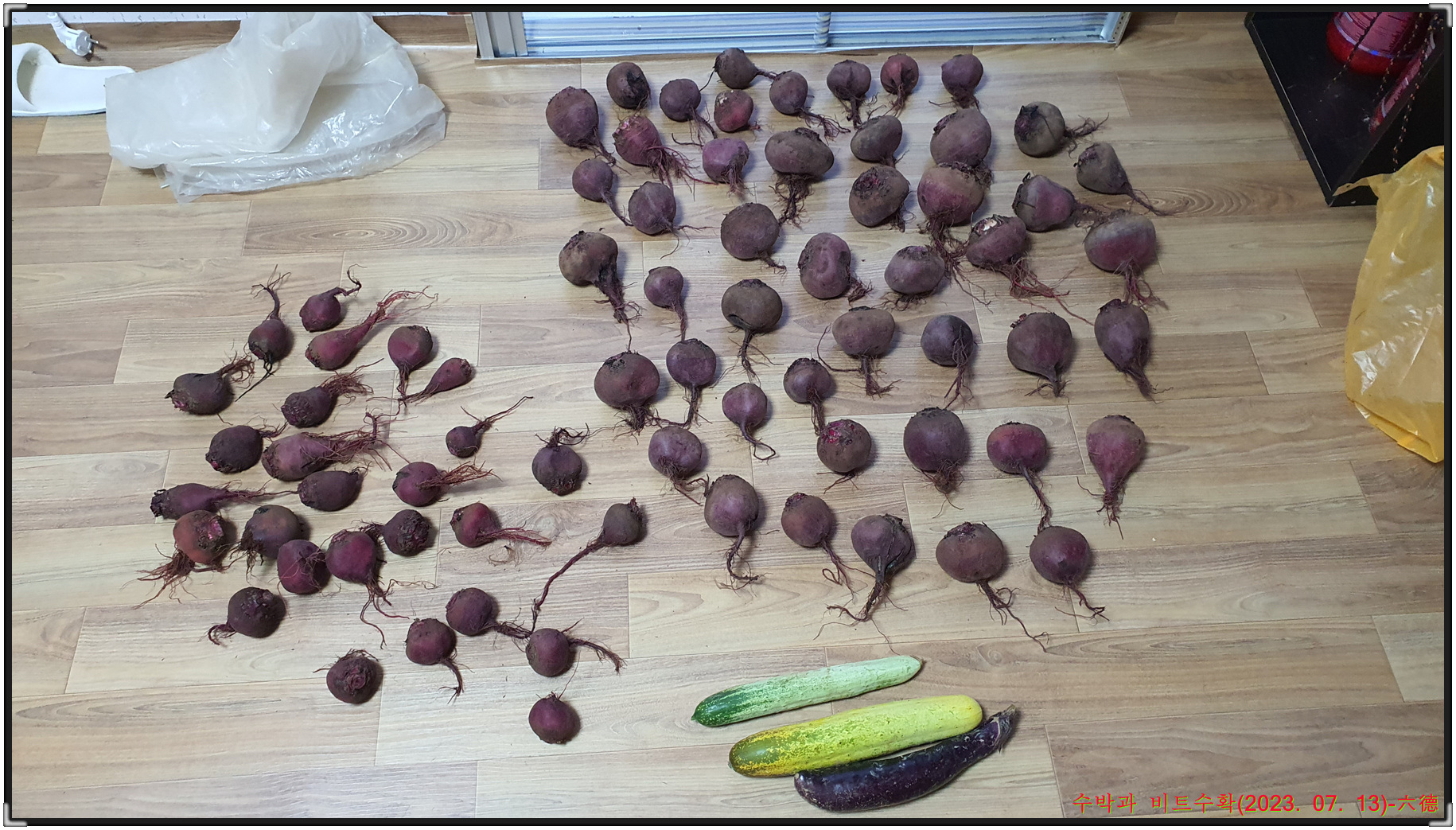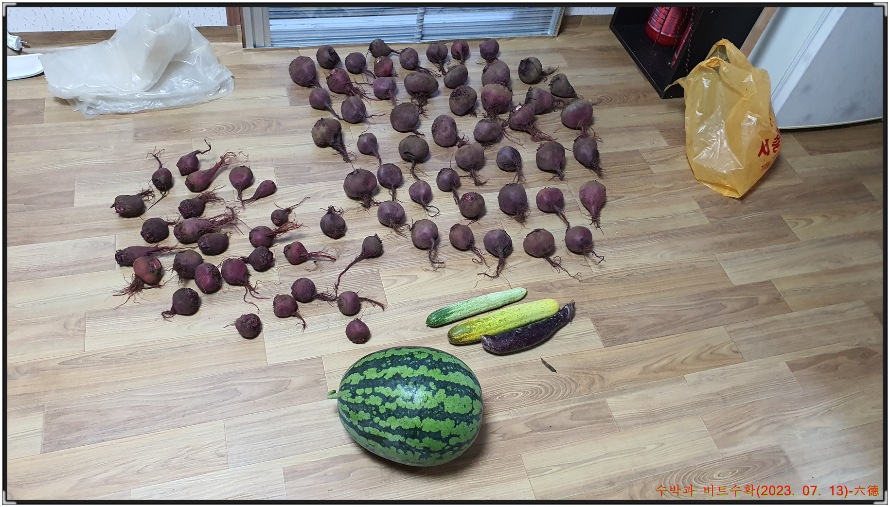 수확한 수박과 비트는 작은아들 생일날 가족들이 모여서 맛나게 먹었구요.