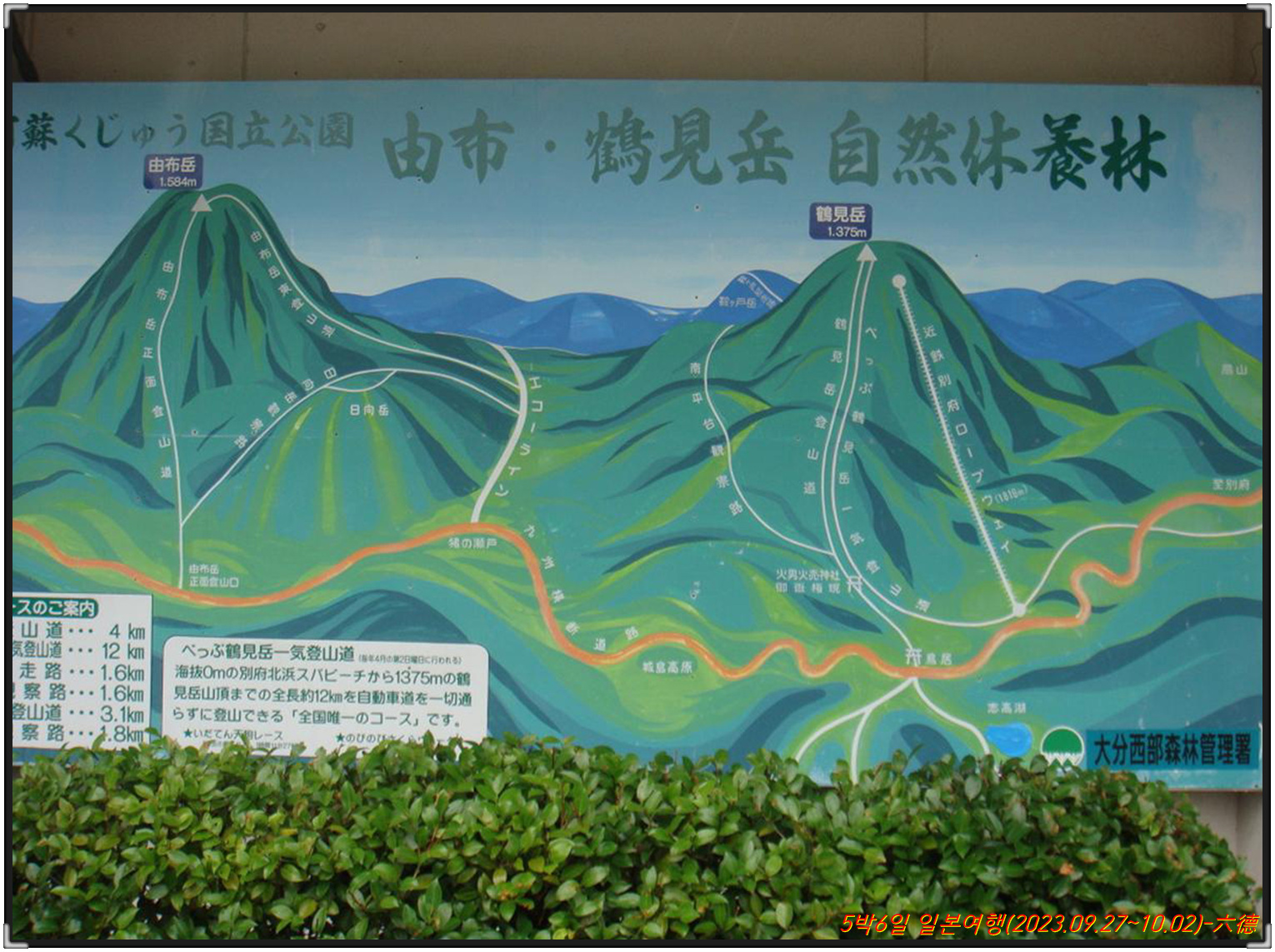 츠루미산의 등산안내도로 위안을 삼고서 훗날을 기약하며 뱃푸를 출발합니다.
