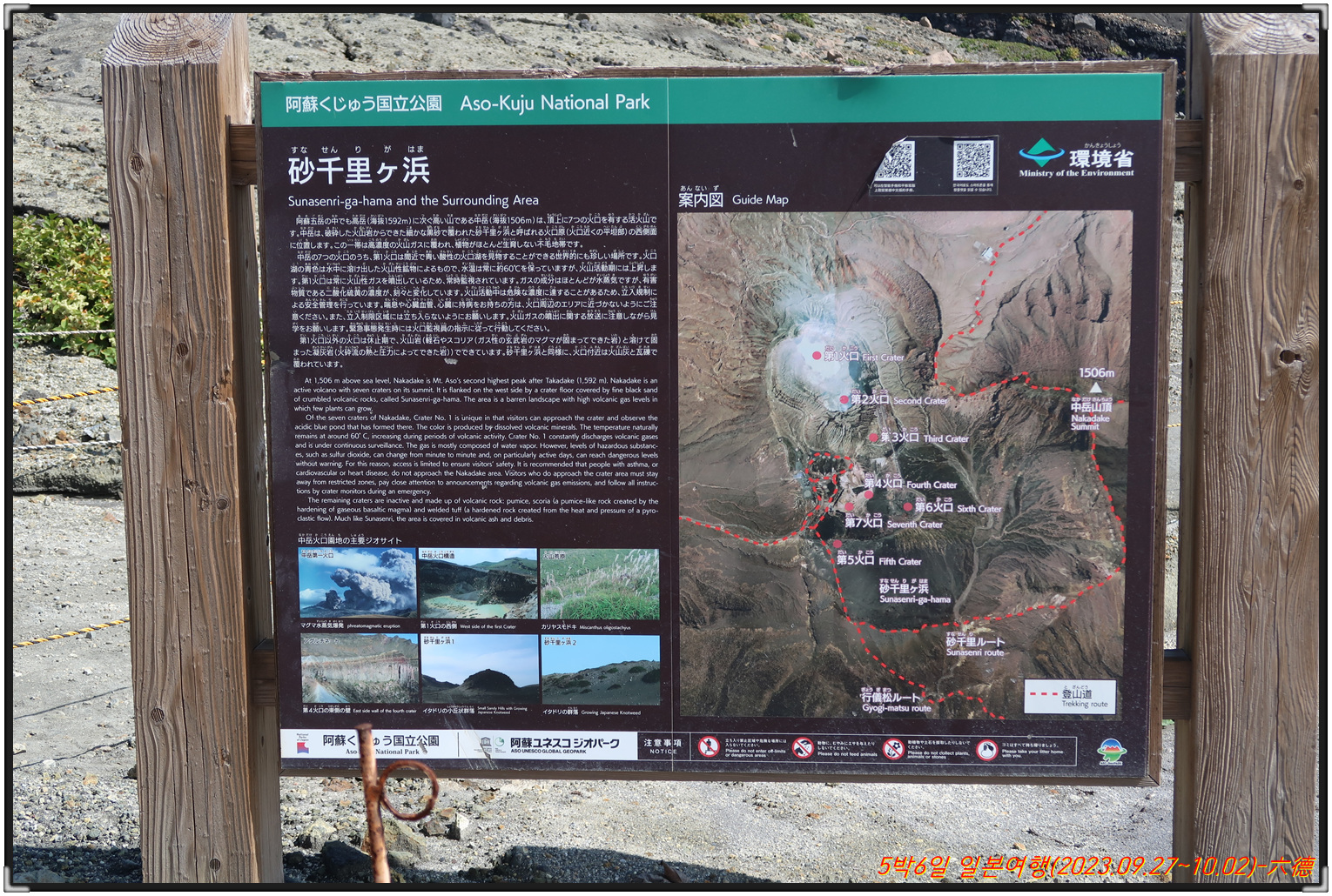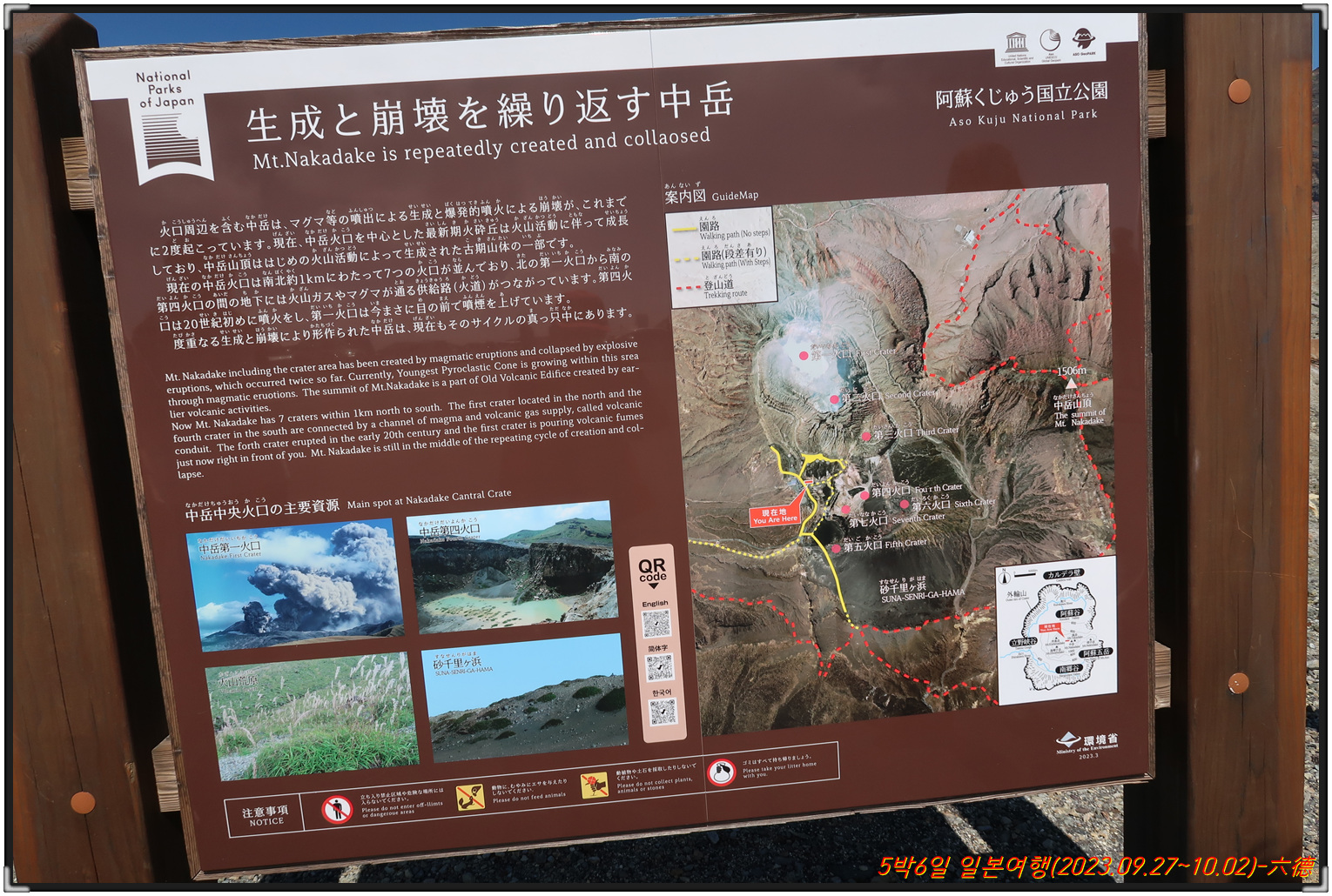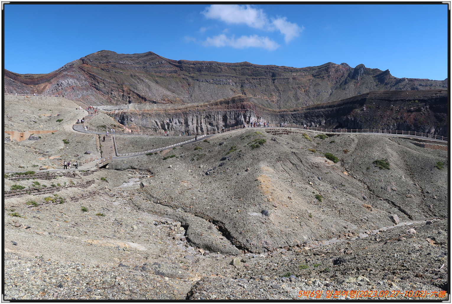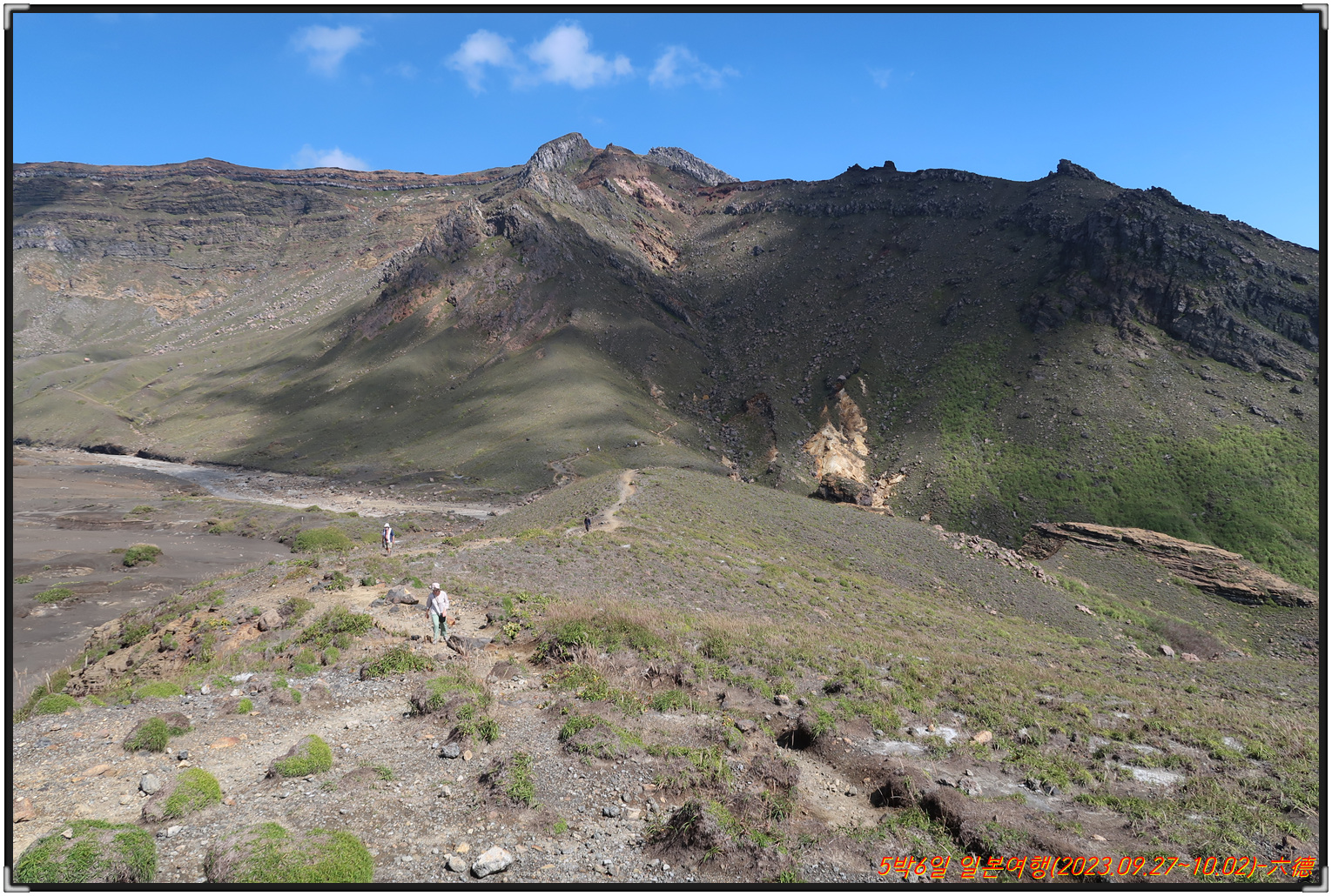 대관봉에서 그야말로 막힘 없는 조망을 짧은 시간에 감상을 하고서 다시 아소산으로 출발하게 되는데 다이칸보(대관봉) 주위의 트레킹길을 따라 산책해보지 못함이 아쉬움으로 밀려와 발걸음이 떨어지지 않지만 어찌하겠는가.