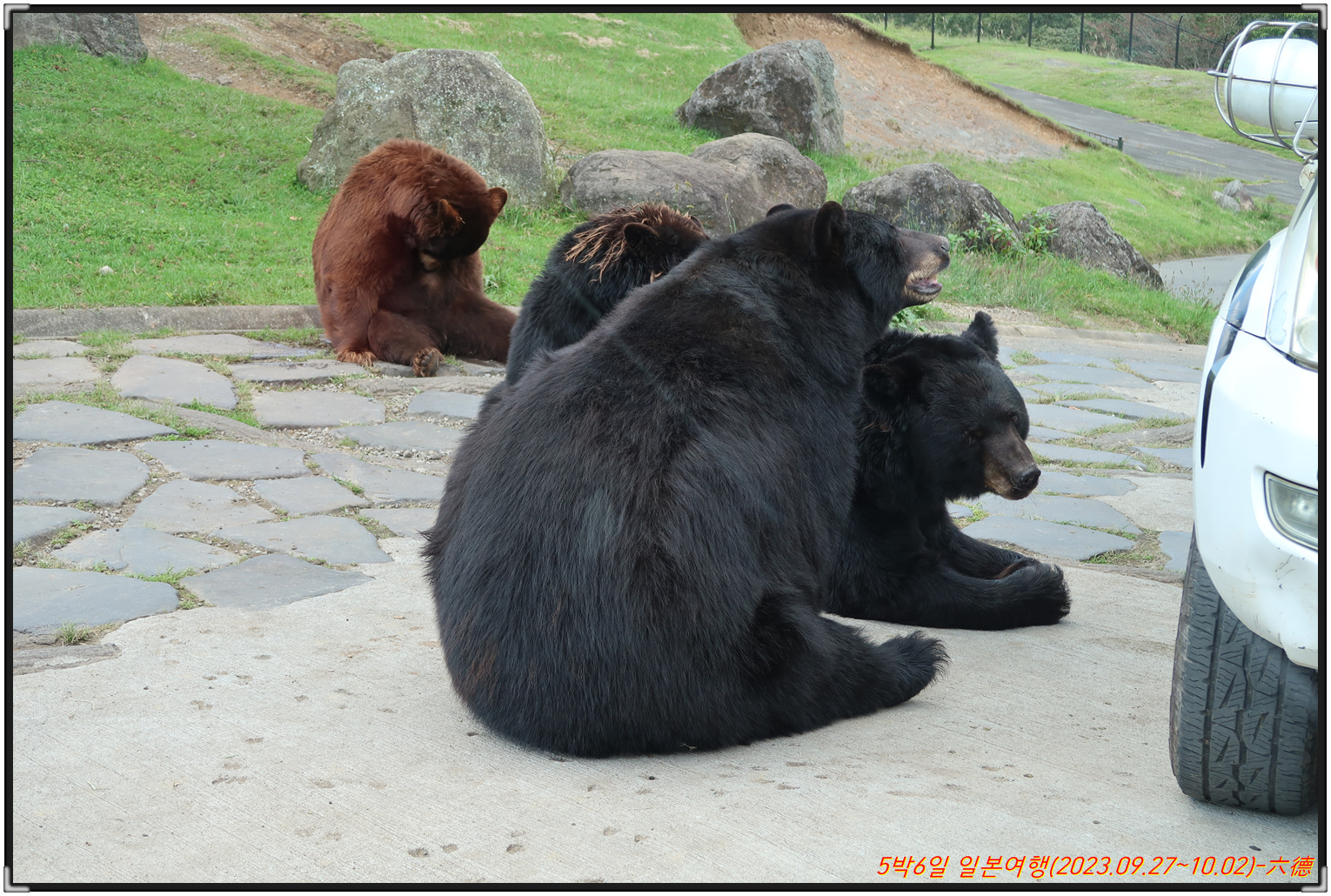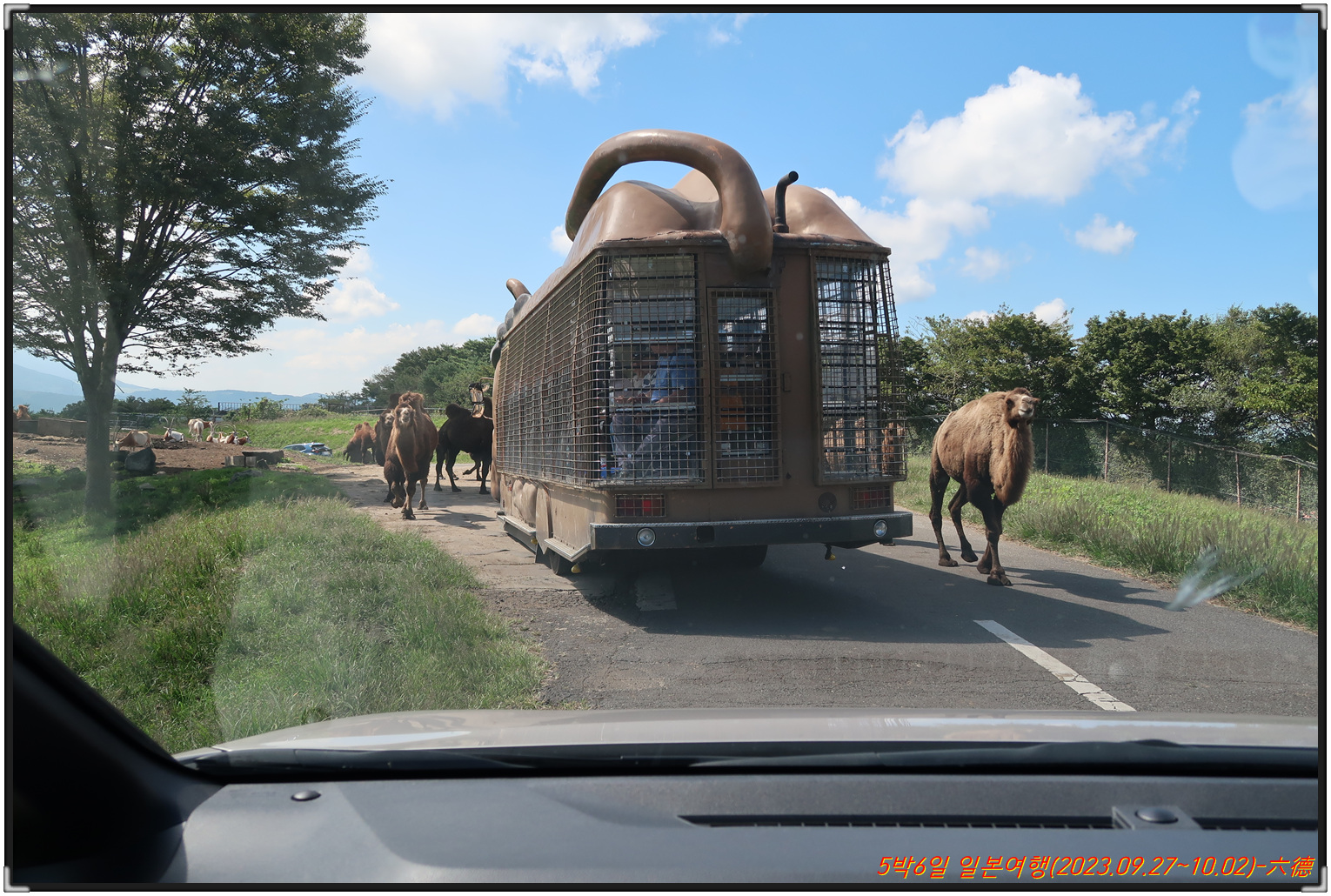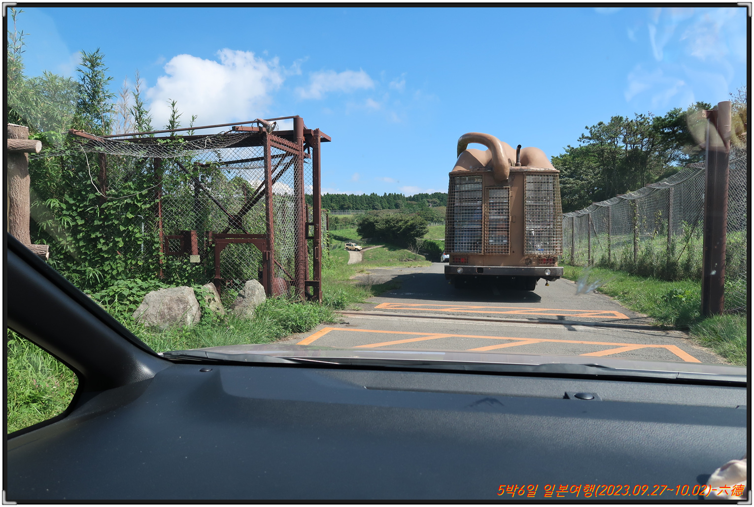 사파리를 구경한 후 공원의 밴취에 앉아 준비해간 도시락으로 점심을 먹고 다시 숙소인 하키다까지 약135km를 달려가야 되겠기에 숙소로 돌아가는 운전은 내가 하기로 하고서 고속도로요금소로 들어섰는데 뭐 네비게이션의 안내도 이상하고 이정표의 방향감각도 이상해 멈춰서서 방황하고 있다보니 안내소에서 일본어로 안내방송이 나오는데 알아들을 수 없어 뭐시뭐시 물어보니 바리케이트를 올려줘 어렵게 고속도로로 진입할 수 있었다.