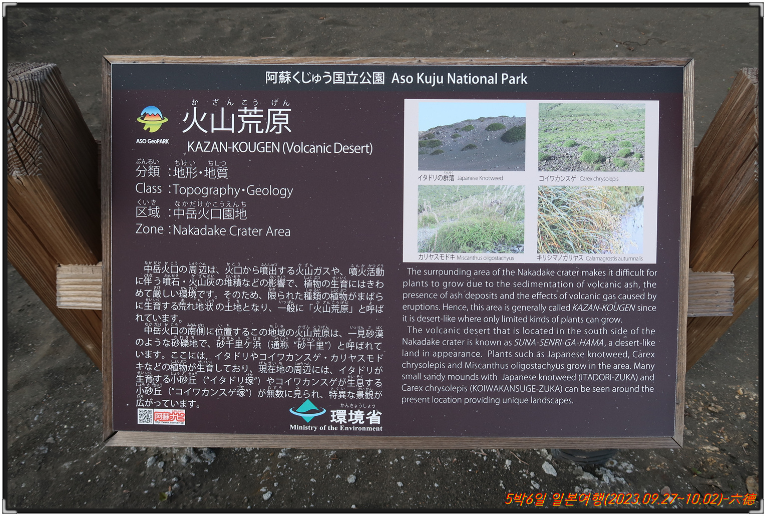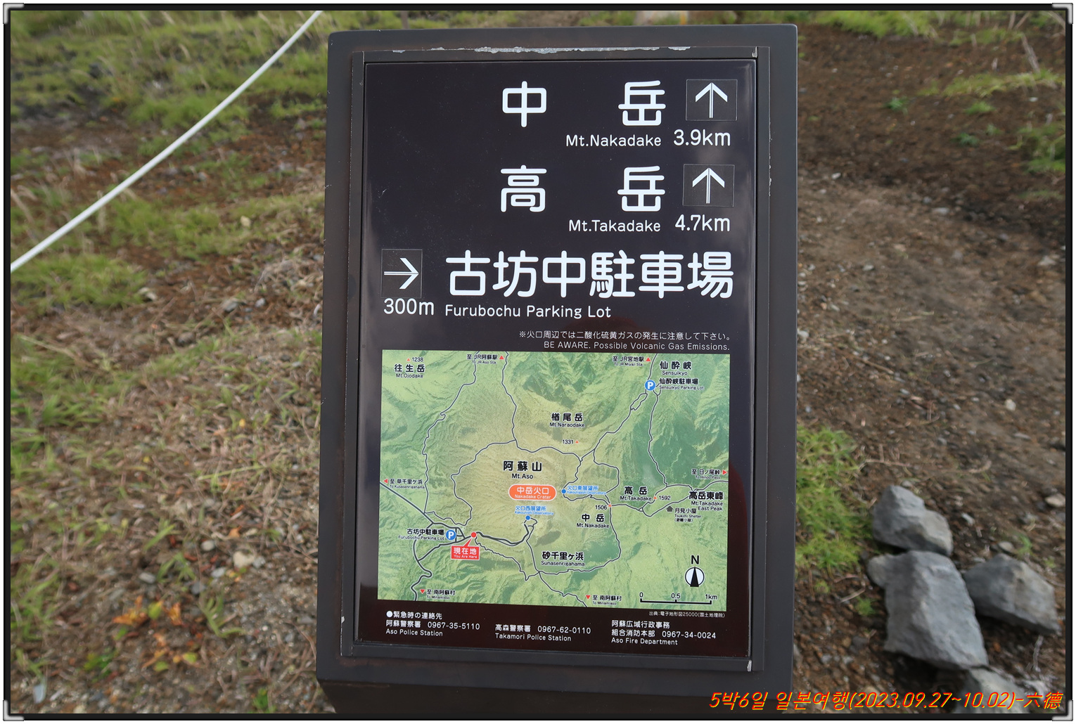 다이칸보 전망대출발(11:49분) - 아소산(구마모토현 아소시 다카와라) 도착(12:37분)