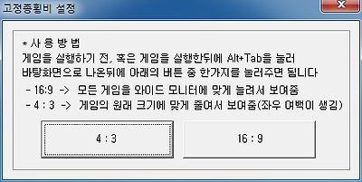 프로그램 설명처럼 게임을 실행하기 전, 혹은 실행한 뒤 4:3 버튼을 누르면