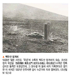 “정계비는 천지 남쪽 십리쯤에 있으며 정계비의 서편 몇 보 지점에 공짜기가 있어 압록강의 근원이 되고