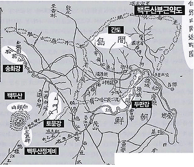 50년의 상론중 “토문강자장백산동변류출향동남류입어해 기서남위조선 동북위중국(土門江自長白山東邊流出向東南流入於海其西南爲朝鮮 東北爲中國)으로