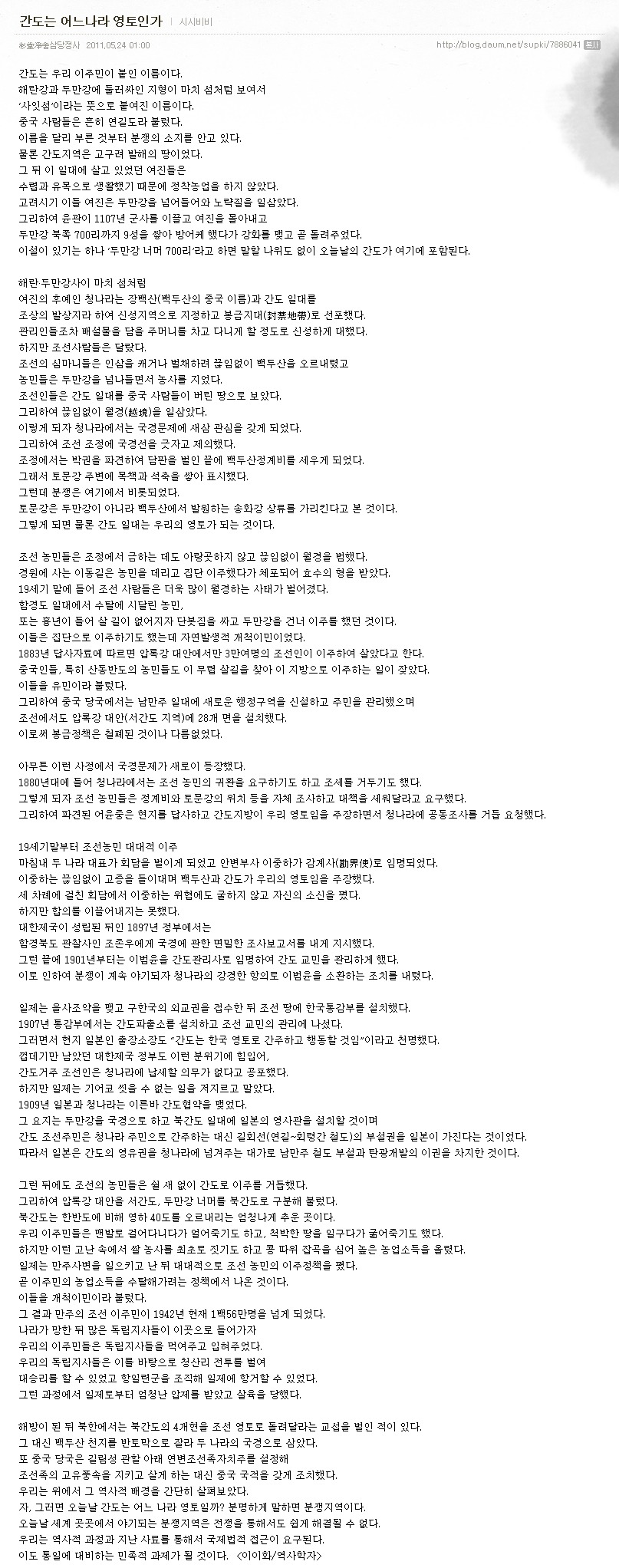 간도는 어느 나라 영토인가? 작성자청지기|작성시간11.05.27|조회수14 목록 댓글 0 글자크기 작게가 글자크기 크게가 다음검색 현재 게시글 추가 기능 열기 북마크 공유하기 신고 센터로 신고 댓글 댓글 0 댓글쓰기 답글쓰기 댓글 리스트
