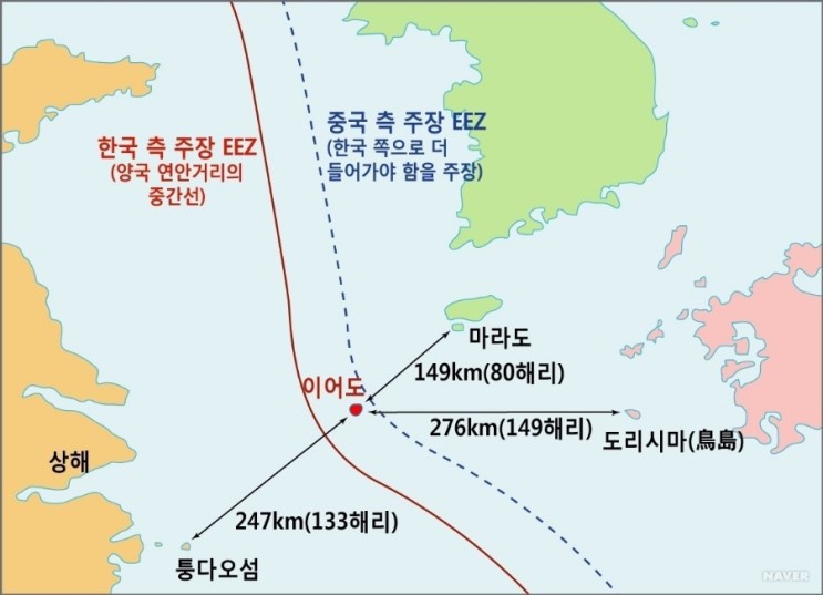 1987년에는 해운항만청이 이어도 최초의 구조물인 이어도 부표를 띄우고 국제적으로 공표하였다. 그러나 1994년부터 발효된 유엔해양법협약에 따른 배타적경제수역(EEZ)을 둘러싼 중국과의 견해차로 1990년대부터 해상경계획정 협상에도 불구하고 합의에 이르지 못했다. 이에 아직까지도 이어도를 둘러싼 한ㆍ중의 갈등은 계속되고 있다.