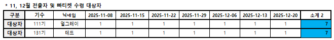 우수회원 등업 대상자 및 11월 ~ 12월 전출자 안내드립니다.