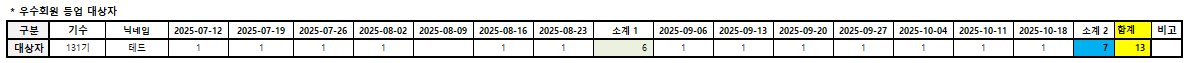 - 최근 4개월 수업 (7주+7주) 14주 강습기간 동안 연속된 수강신청