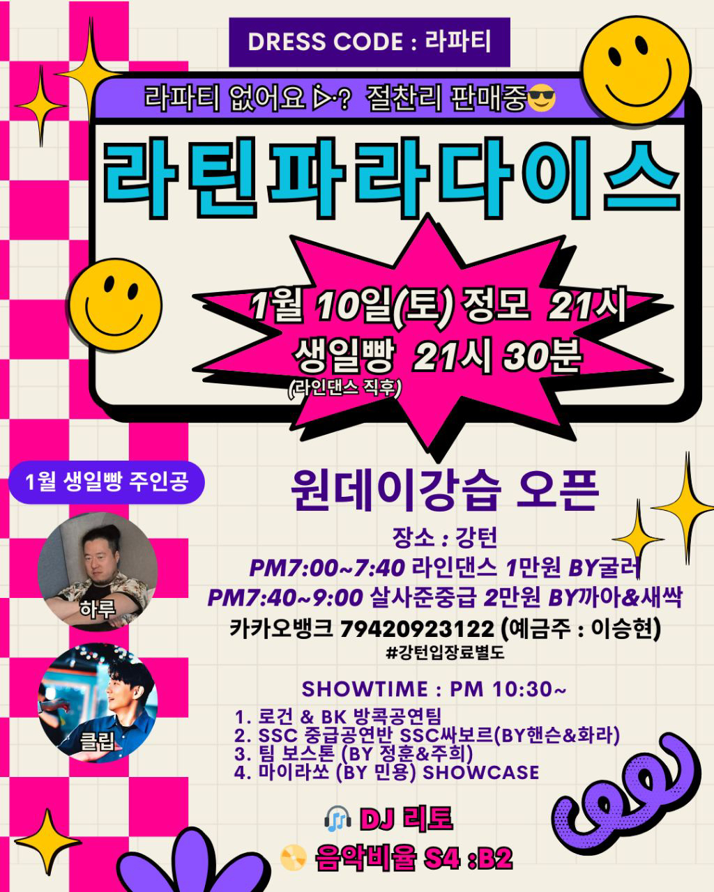 준중급 라인댄스 수업의 인기로 토요일 정모날 원데이 수강이 가능하게 되었어요~
