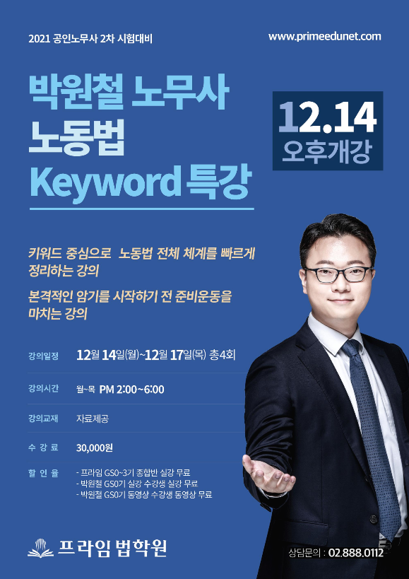 노동법 KeyWord 특강을 12/14 ~ 12/17 촬영 완료하였습니다.
