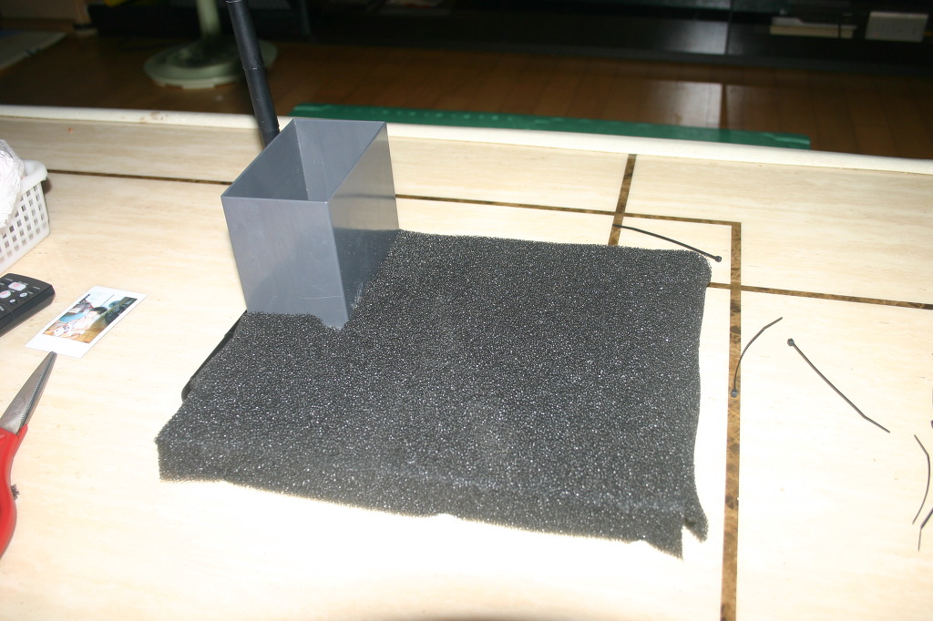 여과매트를 역저면여과기에 감싼후 세팅했습니다.