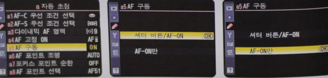일반적으로 반셔터로 초점을 맞춘 다음 셔터를 완전히 눌러 사진을 찍게 되는데 AF-on버튼을 활용하면 셔터로는 촬영만 하고 초점은 AF-on 버튼으로 맞출수 있게 된다. 반셔터로 눌러서 초점을 맞춘 다음에 촬영하게 되면 촬영할때마다 같은 과정을 반복해야만 원하는 곳에 초점을 맞출 수 있지만 AF-on버튼을 눌러 초점을 맞추고 있다가 결정적인 순간에 셔터만 눌러준다면 훨씬 더 빨르게 촬영할 수 있다.