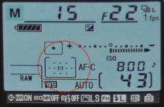 경우엔 싱글 포인트가 적절하다. 반셔터를 눌러보면 붉은 불빛이 표시되는 작은 사각형이 있다.