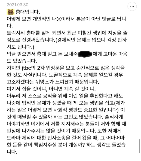 JTBC 설강화 입장문