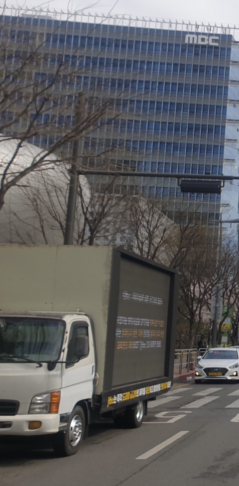YTN 앞에서 트럭시위 시작