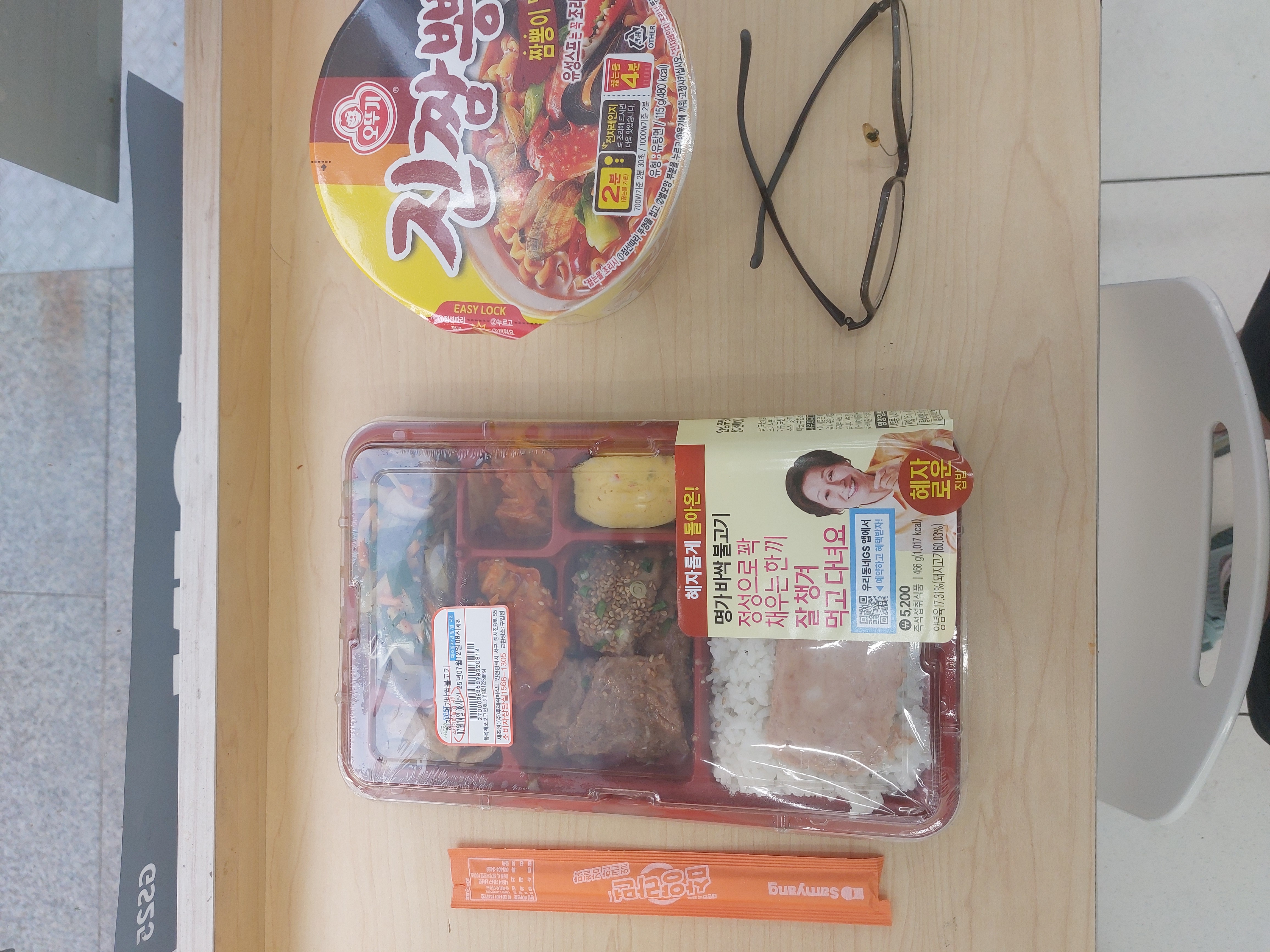 광명시민회관 맞은편 편의점에서 도시락+컵라면 7200원 아침먹고