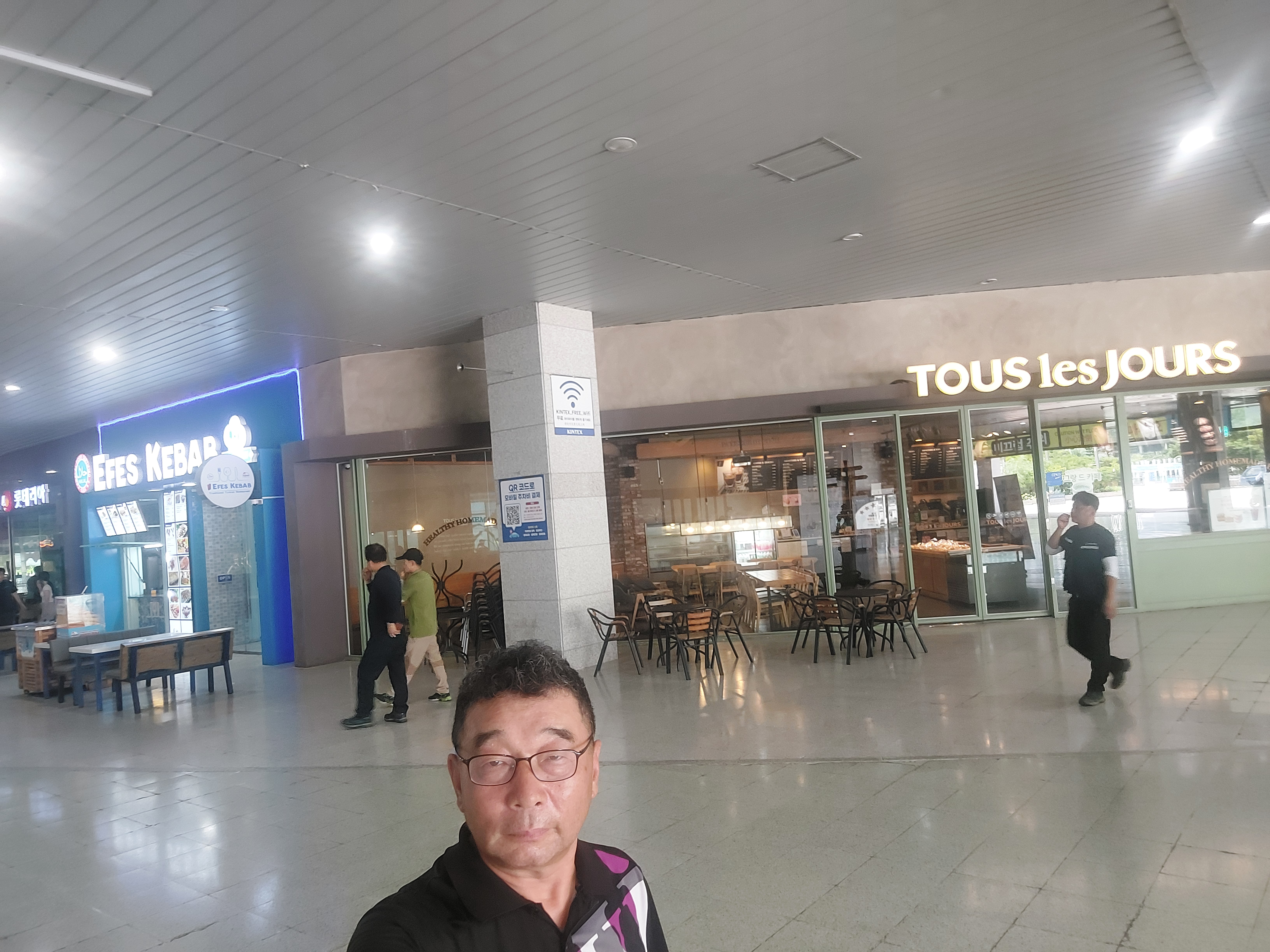 킨텍스 제2 전시장 뚜레쥬르 의자에 앉아 당구선수들 보면서 동백 아가씨~>아이큐의 노래로 들으며 한참쉬고