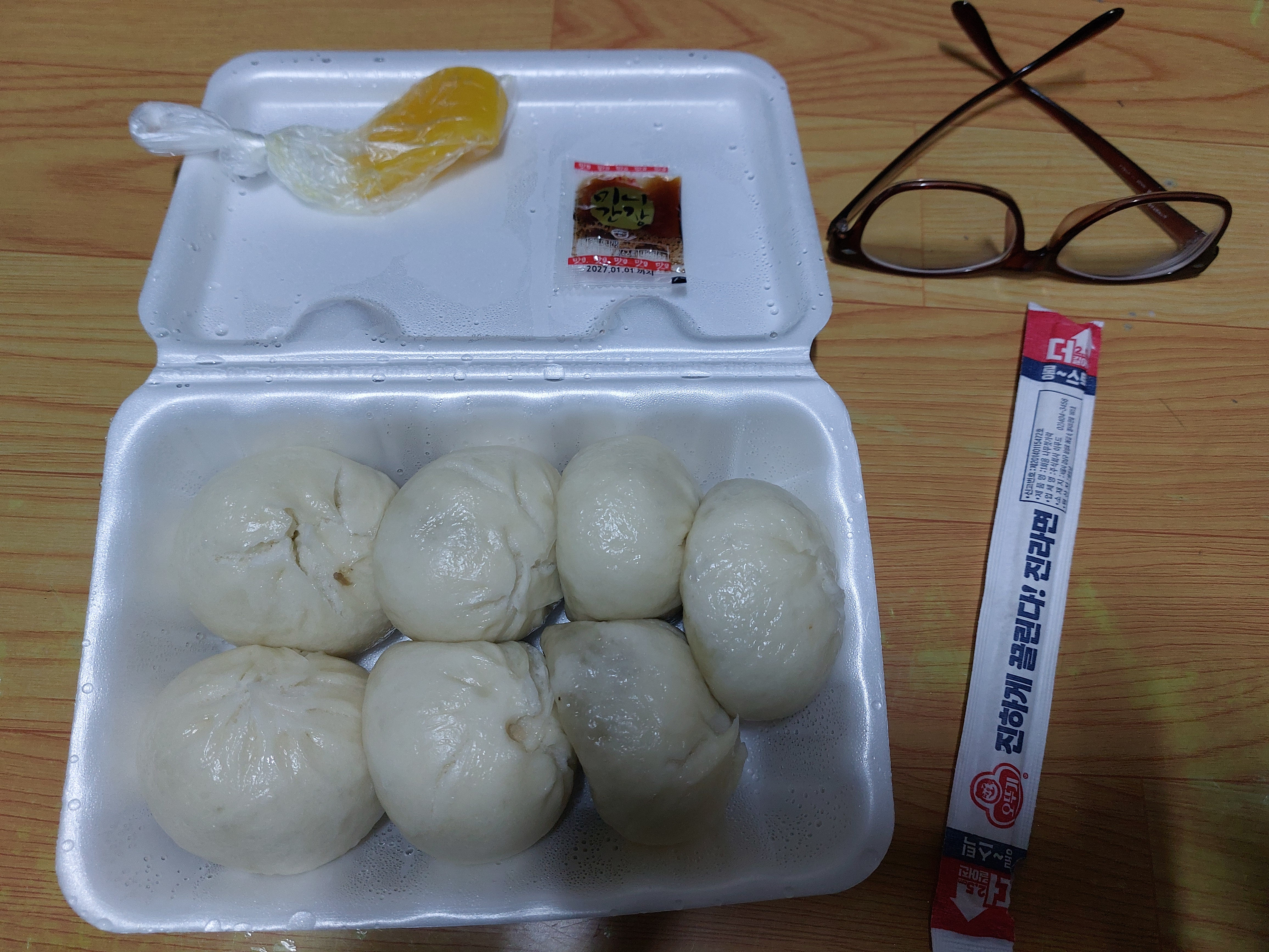 구입한 왕만두 7000원 16시에 저녁으로 먹고..TV보며 친구들과 단톡하며 보냄