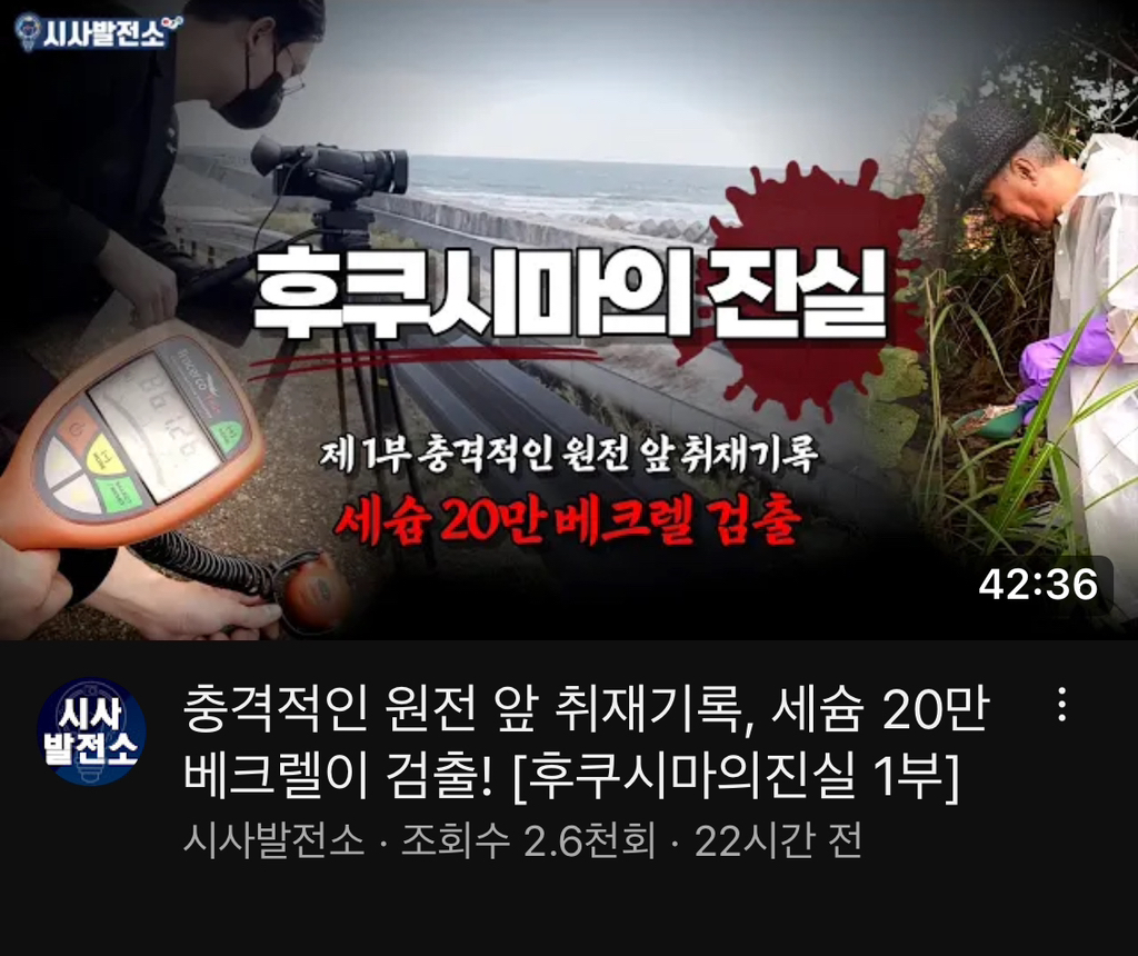 충격적인 원전 앞 취재기록, #세슘 #Cesium 20만 #베크렐( #Becquerel )이 검출! [#후쿠시마•의진실 1부] 작성자딧플🎗|작성시간23.11.26|조회수93 목록 댓글 0 글자크기 작게가 글자크기 크게가 충격적인 원전 앞 취재기록, #세슘 #Cesium 20만 #베크렐( #Becquerel )이 검출! [#후쿠시마•의진실 1부] https://www.youtube.com/watch?v=soiw-MVBwcE #리투시 #시사발전소 다음검색 현재 게시글 추가 기능 열기 북마크 공유하기 신고 센터로 신고 댓글 댓글 0 댓글쓰기 답글쓰기 댓글 리스트