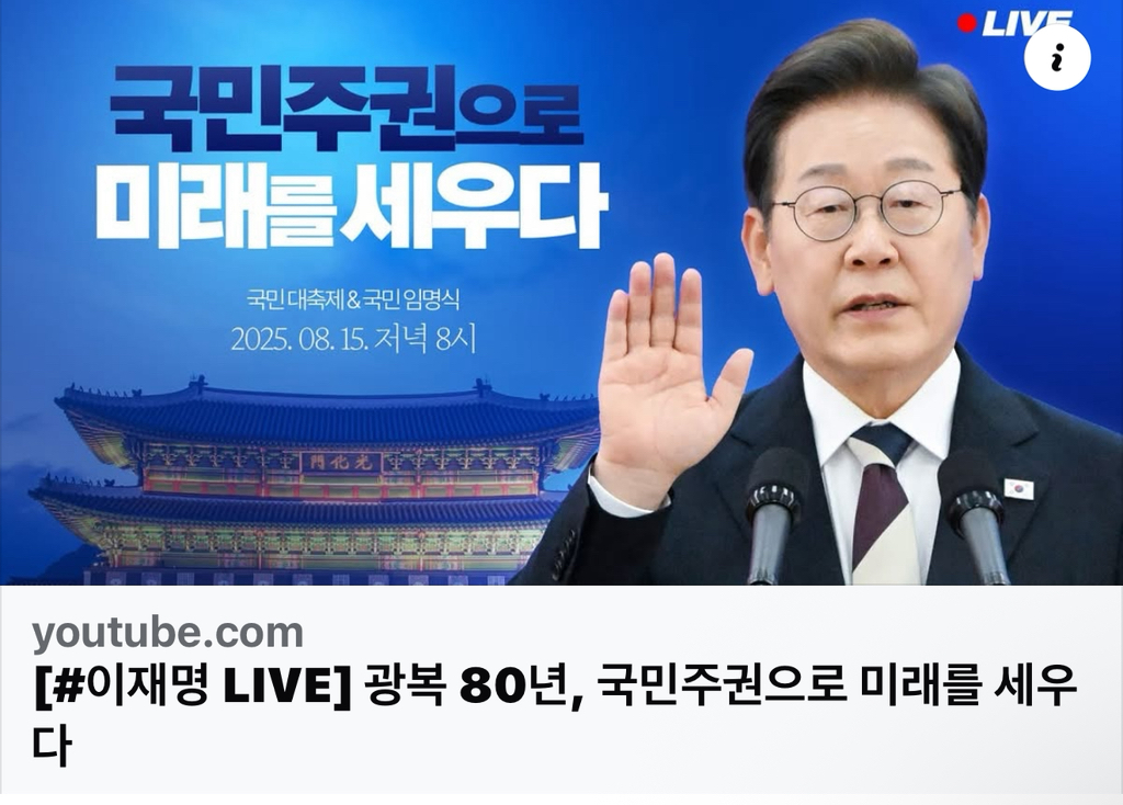 [#이재명 LIVE] 광복 80년, 국민주권으로 미래를 세우다 작성자햐암|작성시간25.08.15|조회수43 목록 댓글 0 글자크기 작게가 글자크기 크게가 [#이재명 LIVE] 광복 80년, 국민주권으로 미래를 세우다 https://www.youtube.com/watch?v=b6WzGuOr0bs . 다음검색 현재 게시글 추가 기능 열기 북마크 공유하기 신고 센터로 신고 댓글 댓글 0 댓글쓰기 답글쓰기 댓글 리스트