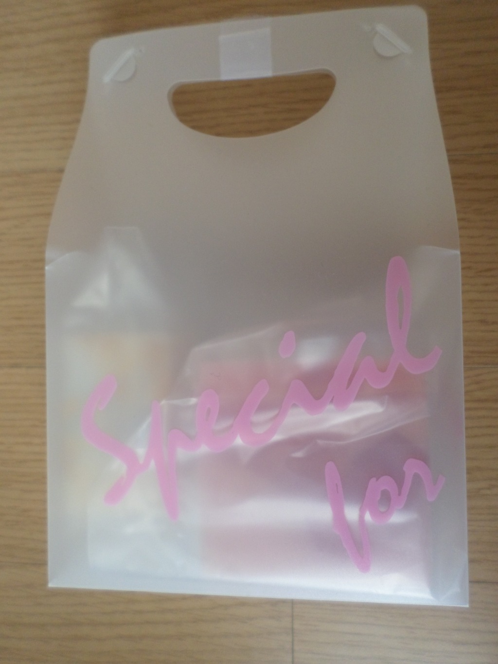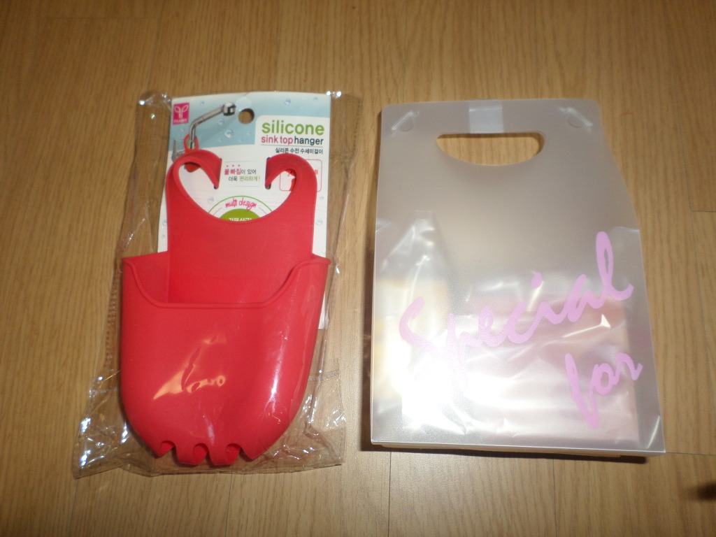 나는 수세미가 든 쇼핑백을 친구에게 주었다.